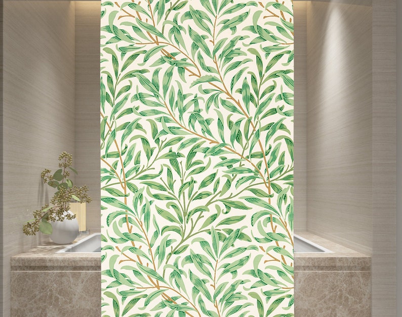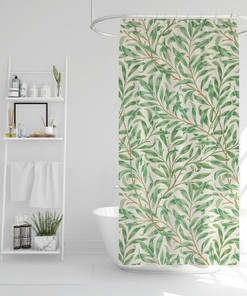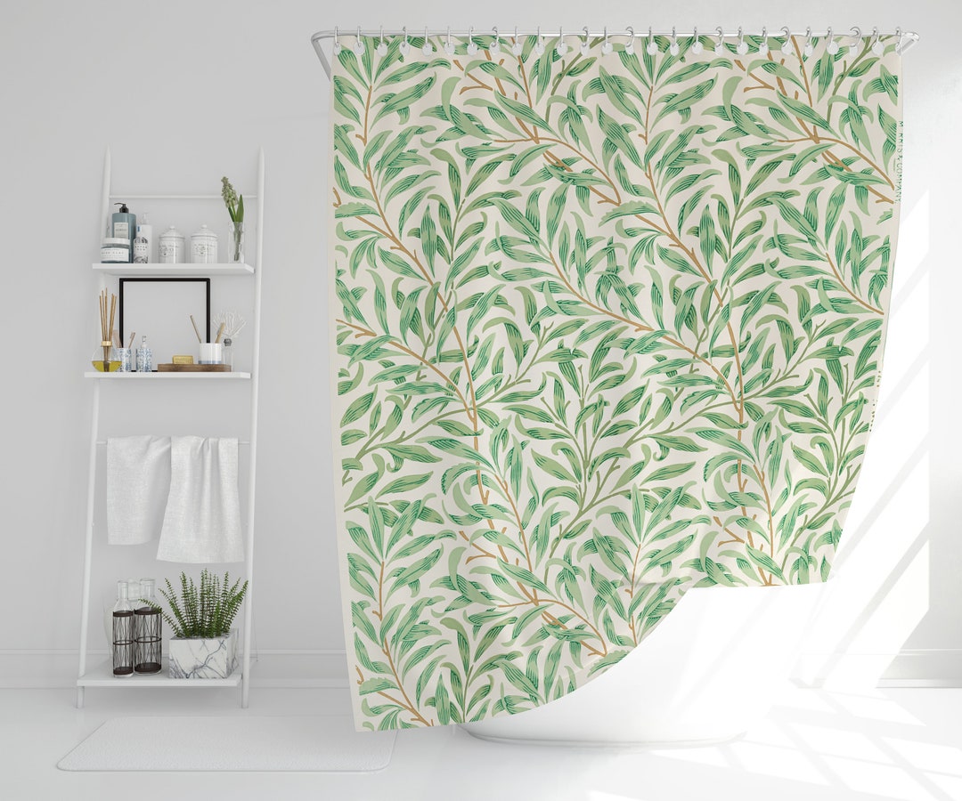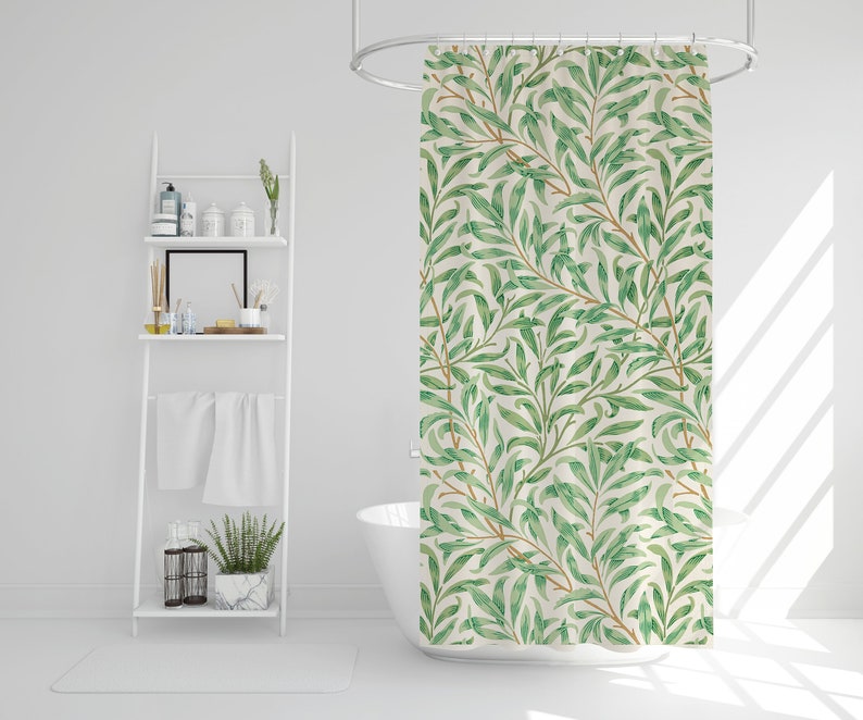 Boho Shower Curtain Botanical Curtain Eco-Friendly Waterproof Extra Durable Art Nouveau Green Leaves Curtain Tropical Decor