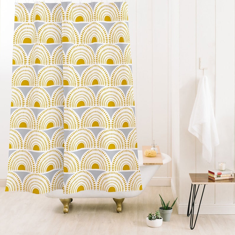 Boho Shower Curtain, Geometric Shower Curtain, Bathroom Decor, Boho Style, Boho Bathroom, Bath Curtain, Sunburst Decor, Grey