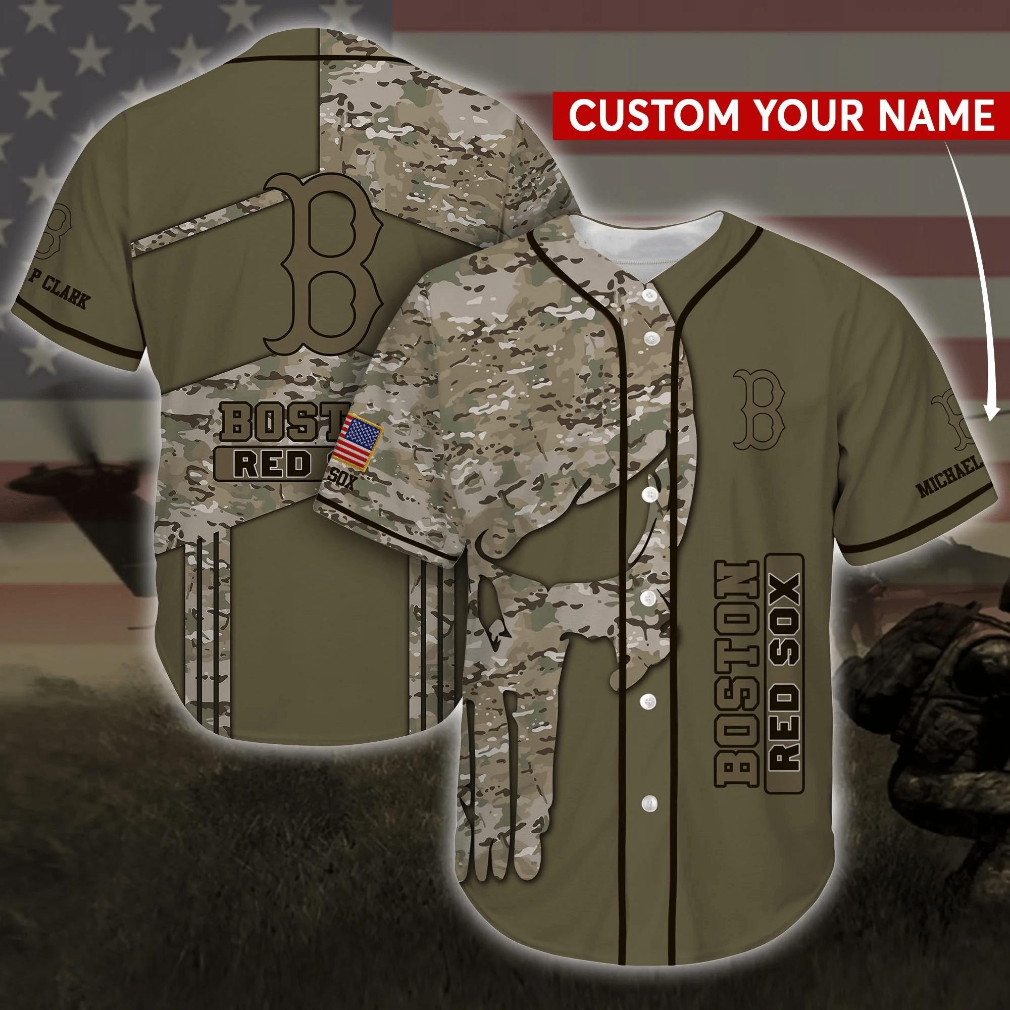 Boston Red Sox MLB Personalized Custom Name Baseball Jersey Shirt Camo