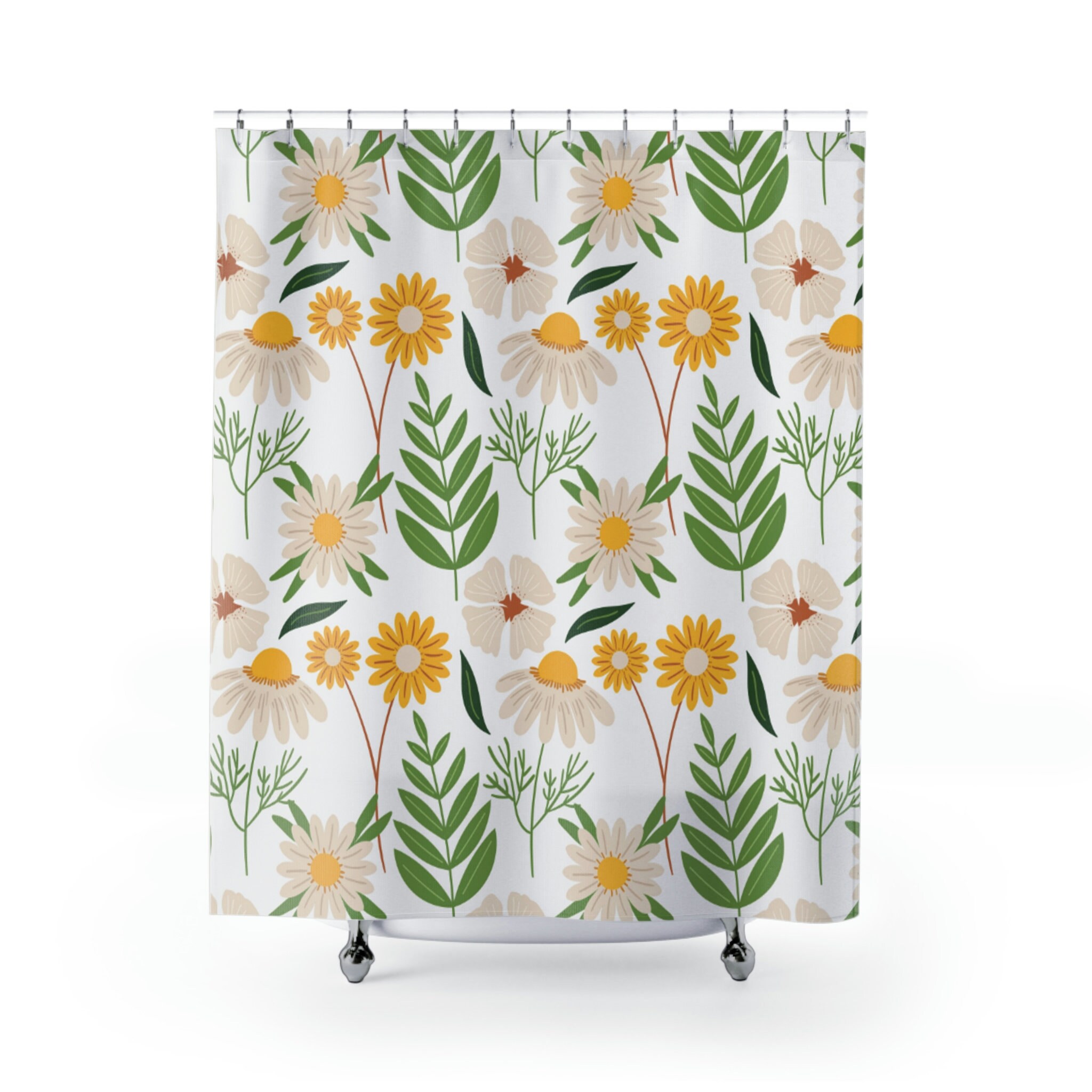 Botanical Fern Floral Shower Curtain for Modern Home Bathroom Decor