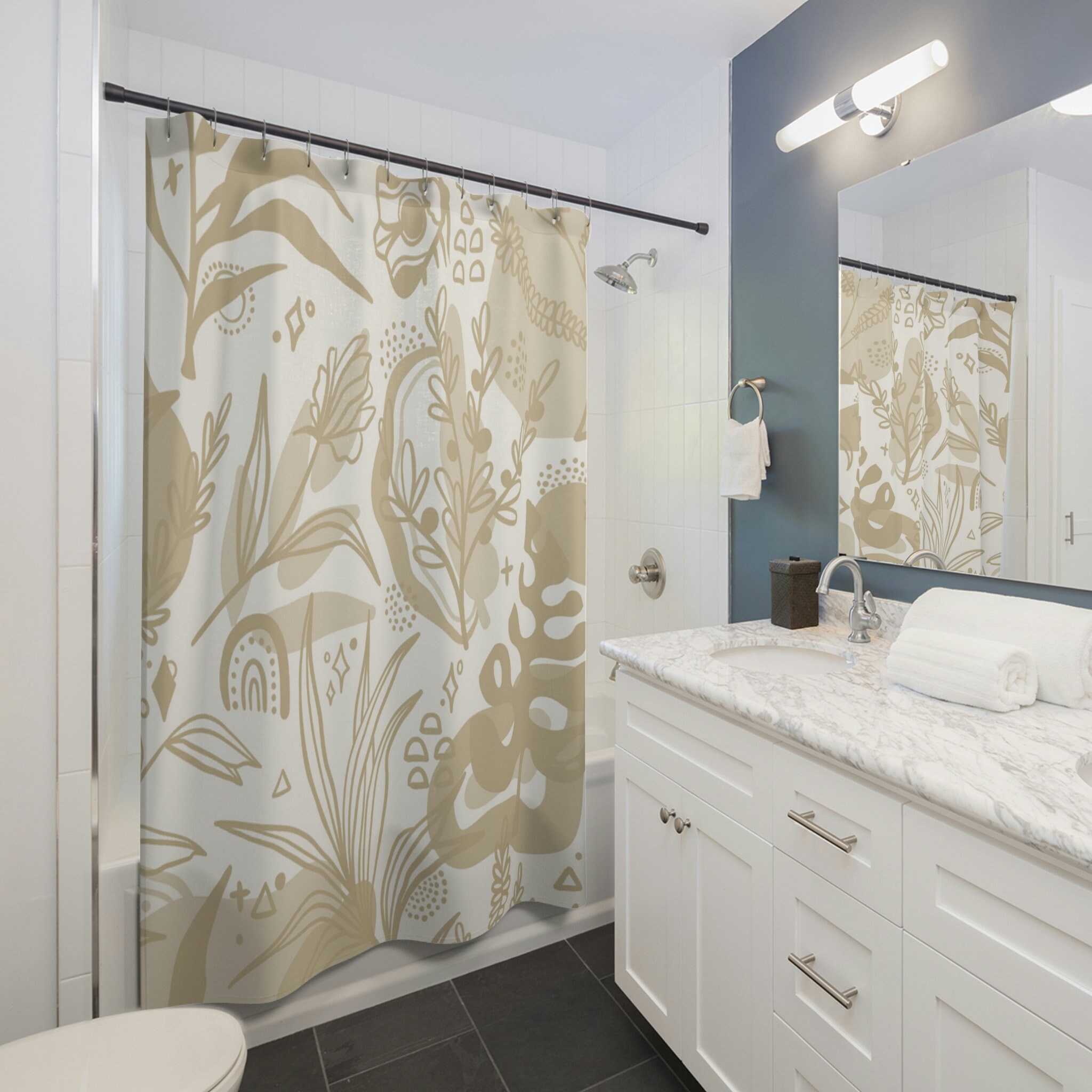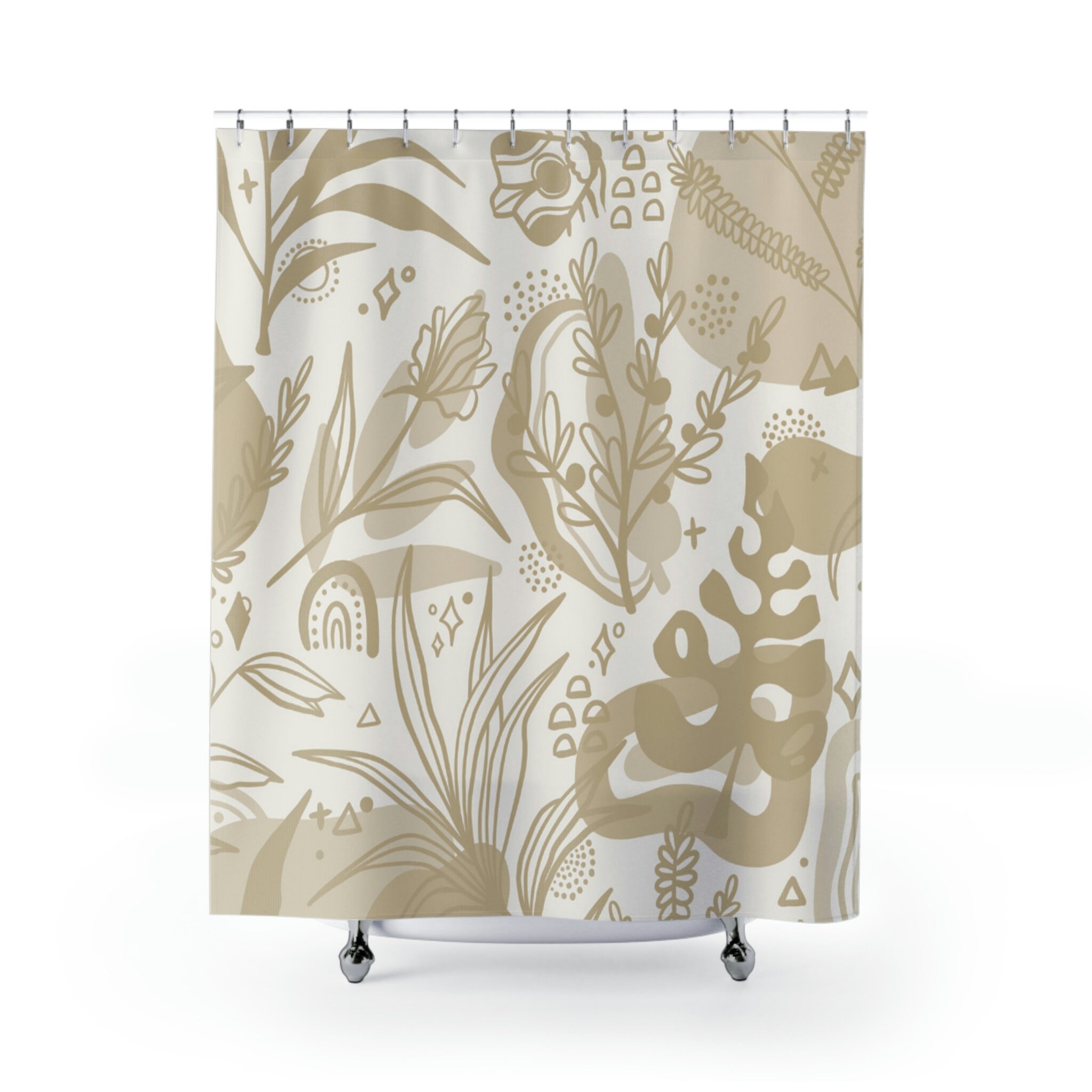 Botanical Floral Boho Shower Curtain – Flowers and Foliage in a Bohemian Style