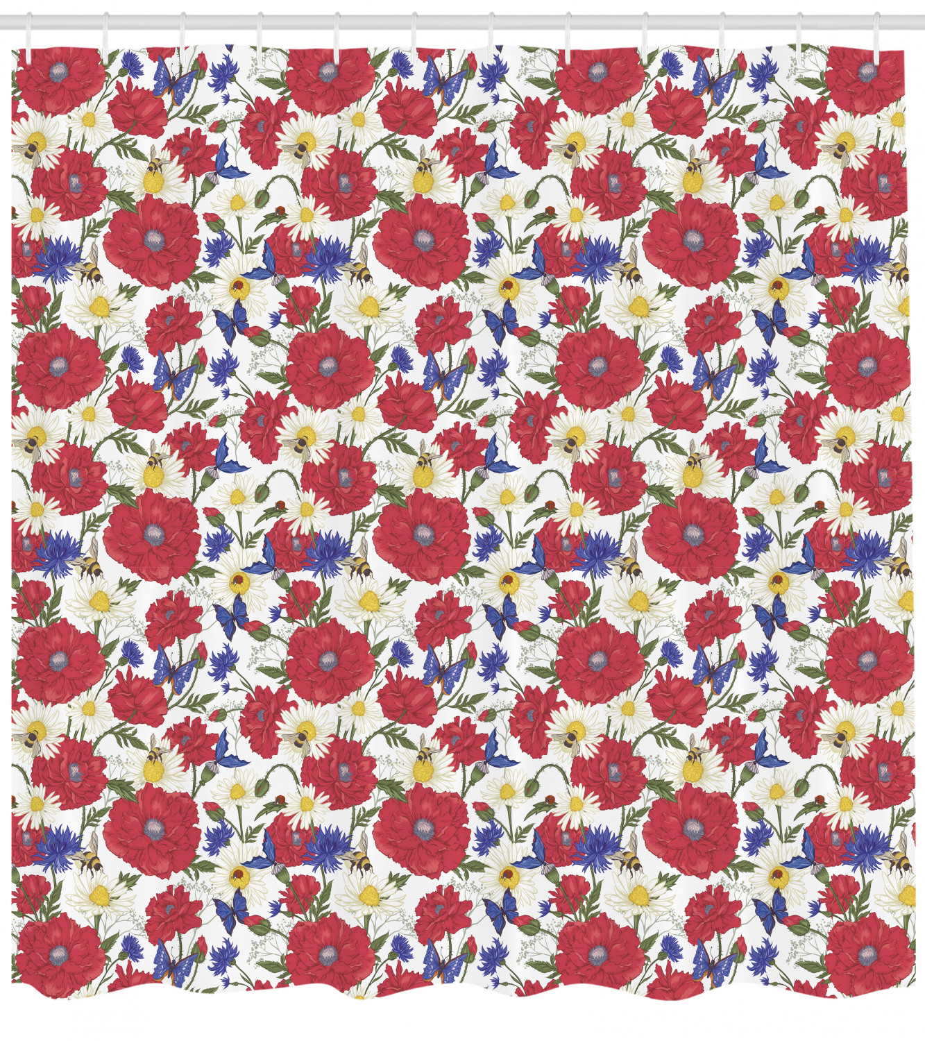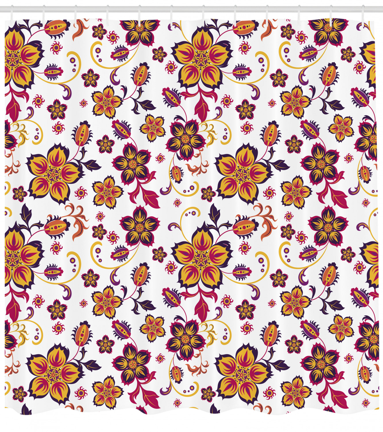 Botanical Flowers Pattern Fabric Shower Curtain for Stylish Bathroom Decor
