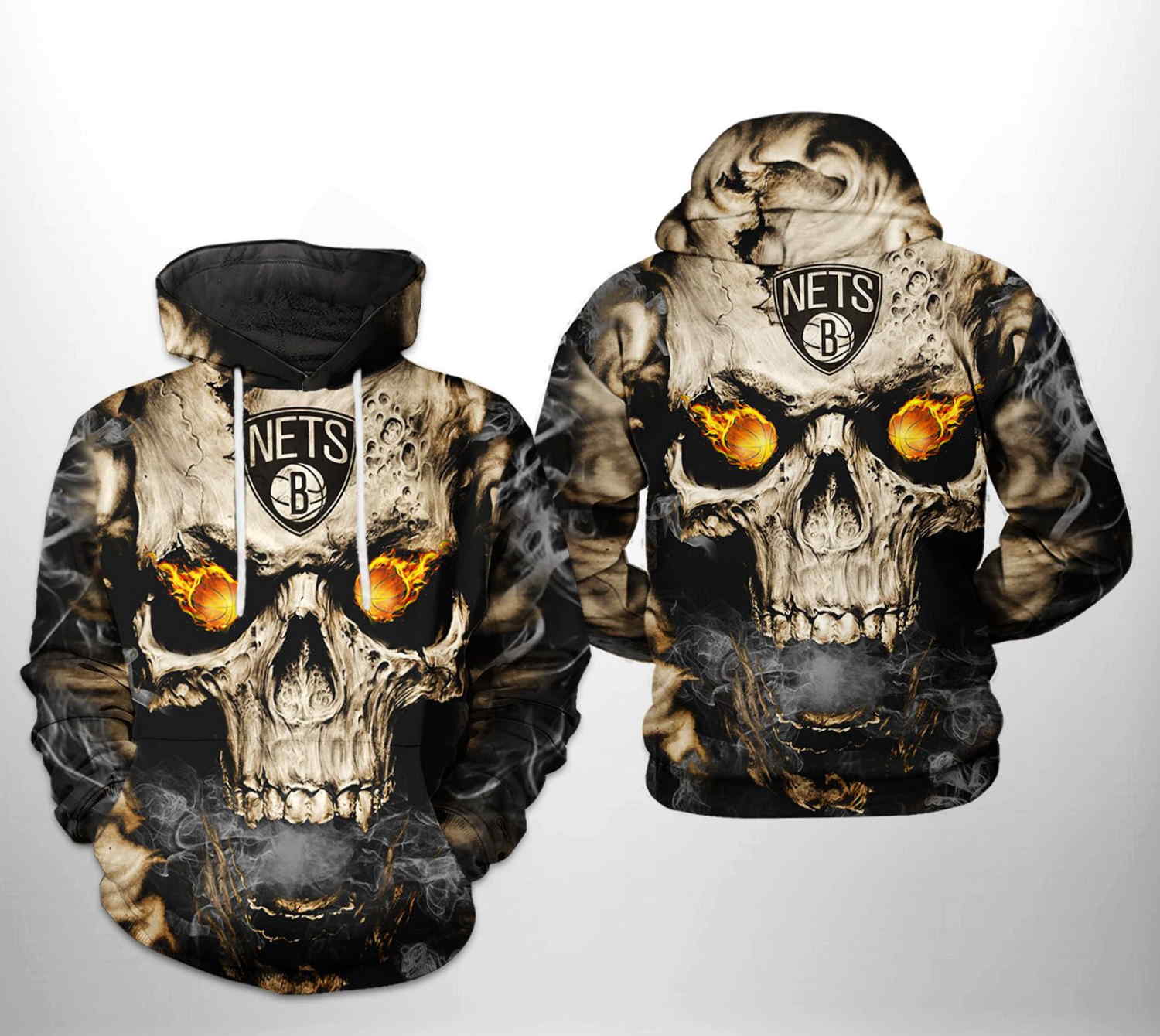 Brooklyn Nets NBA Skull 3D Hoodie