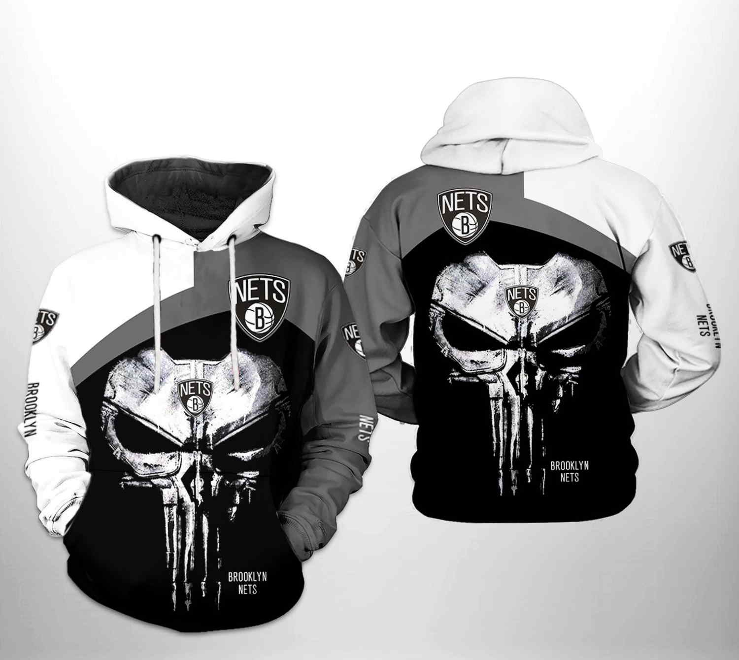 Brooklyn Nets NBA Skull Punisher Team 3D Hoodie