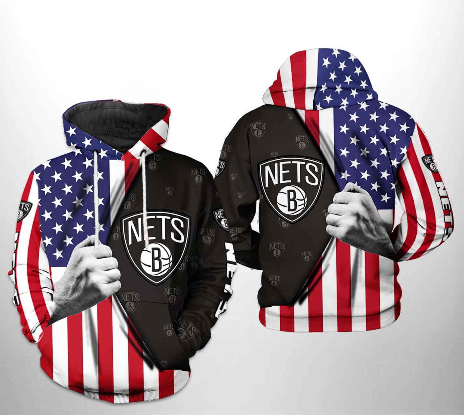 Brooklyn Nets NBA US Flag Team 3D Hoodie