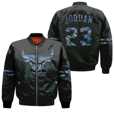 Bulls Michael Jordan Iridescent Holographic Black Jersey Inspired Bomber Jacket