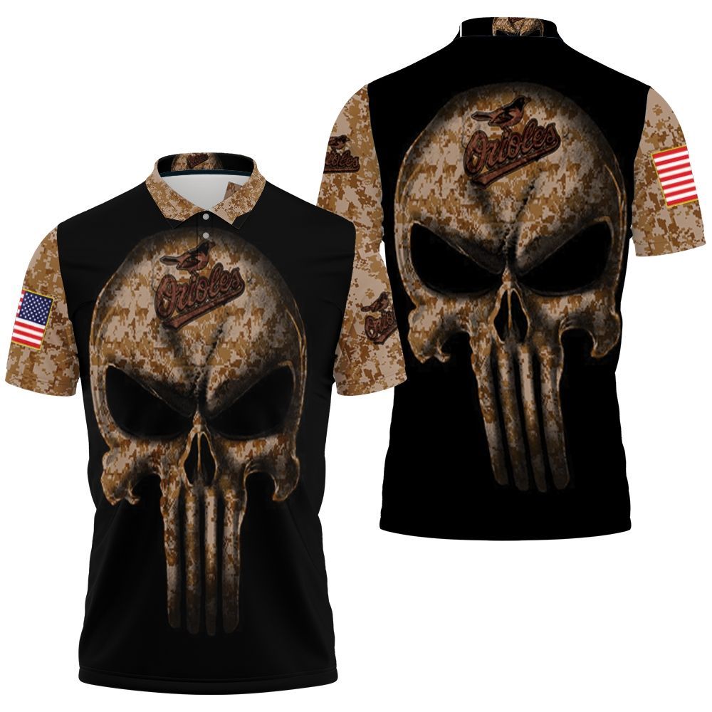 Camouflage Skull Baltimore Orioles American Flag Polo Shirt All Over Print Shirt 3d T-shirt