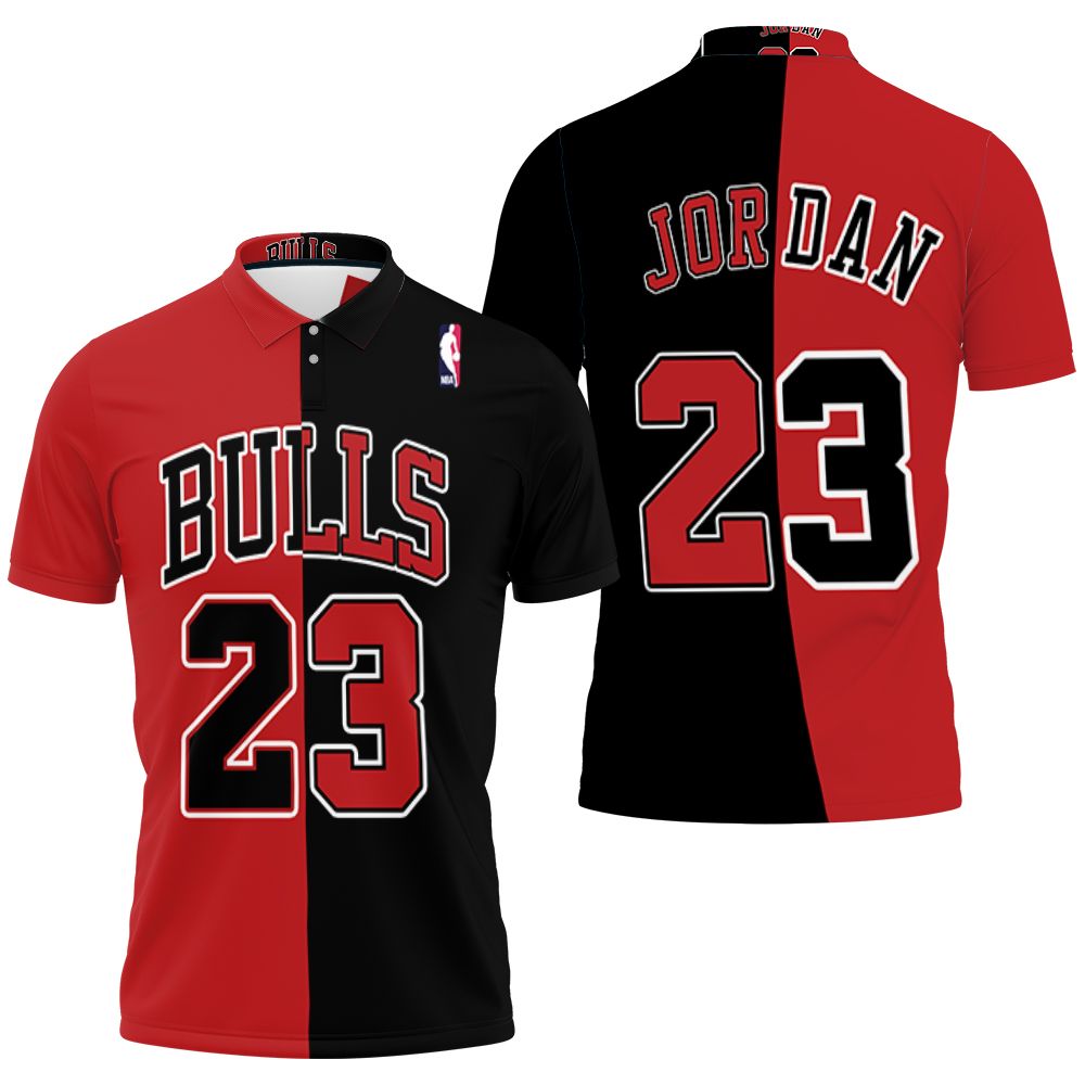 Chicago Bulls Michael Jordan 23 Nba Split Edition Red Black Jersey Inspired Style Polo Shirt
