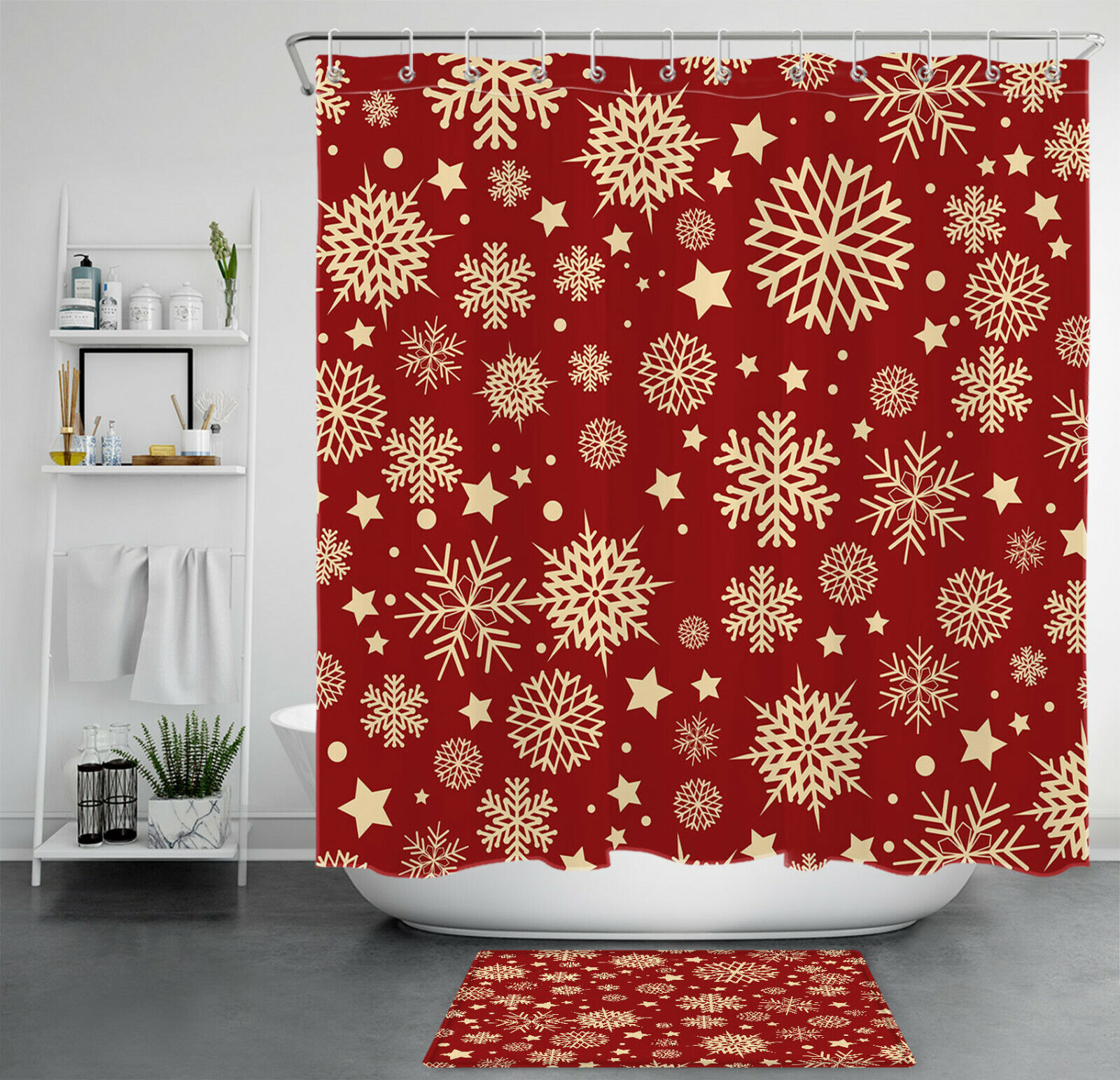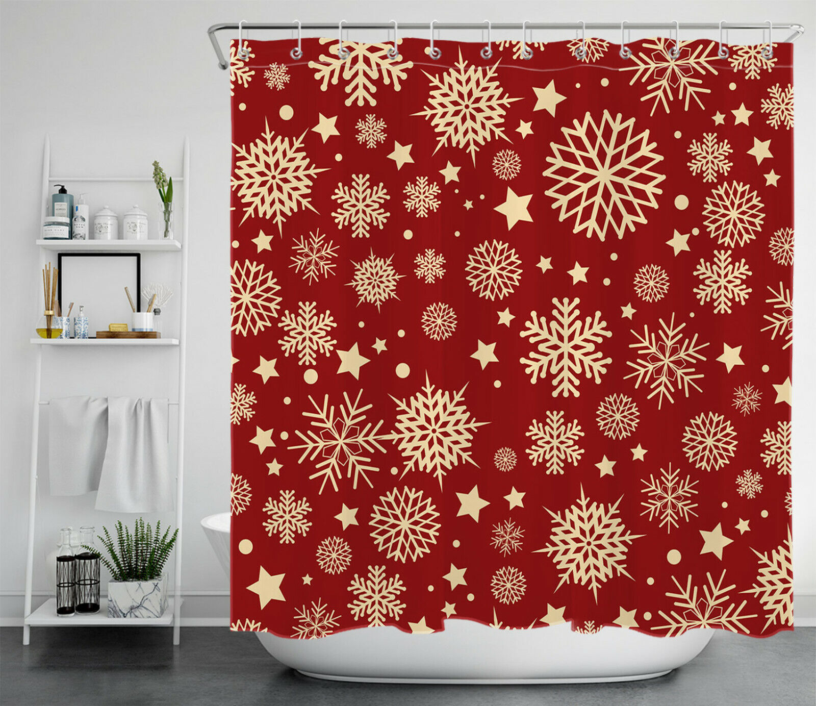 Christmas Snowflakes Shower Curtain in Red Background for a Festive Bathroom Accessory