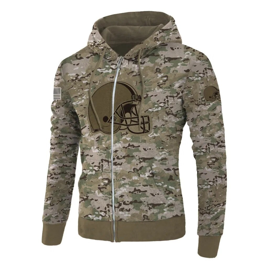 Cleveland Browns Camo Hoodie 3D Printed Pullover Zip Up Hoodies Gifts for Fans