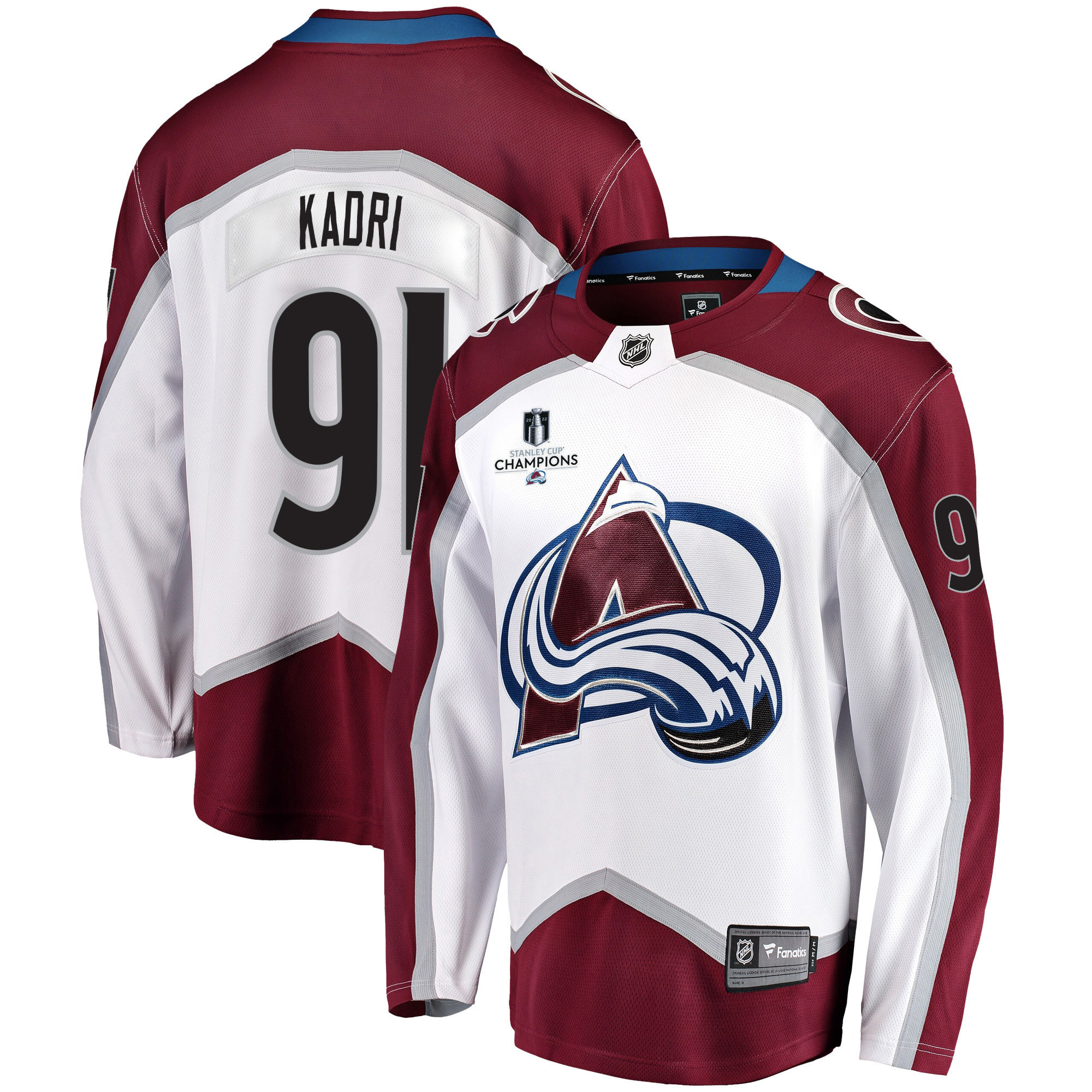 Colorado Avalanche Nazem Kadri 91 Away 2022 Stanley Cup Champions Breakaway Men Jersey – White