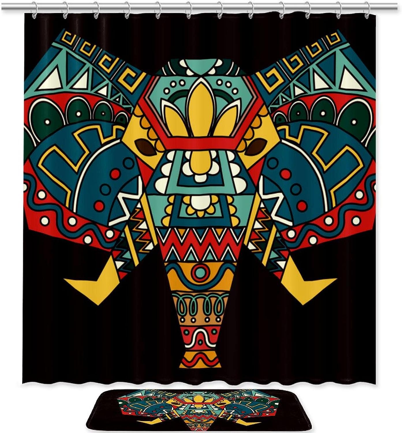 Colorful Bohemian Elephant Waterproof Shower Curtain for Bathroom Decor