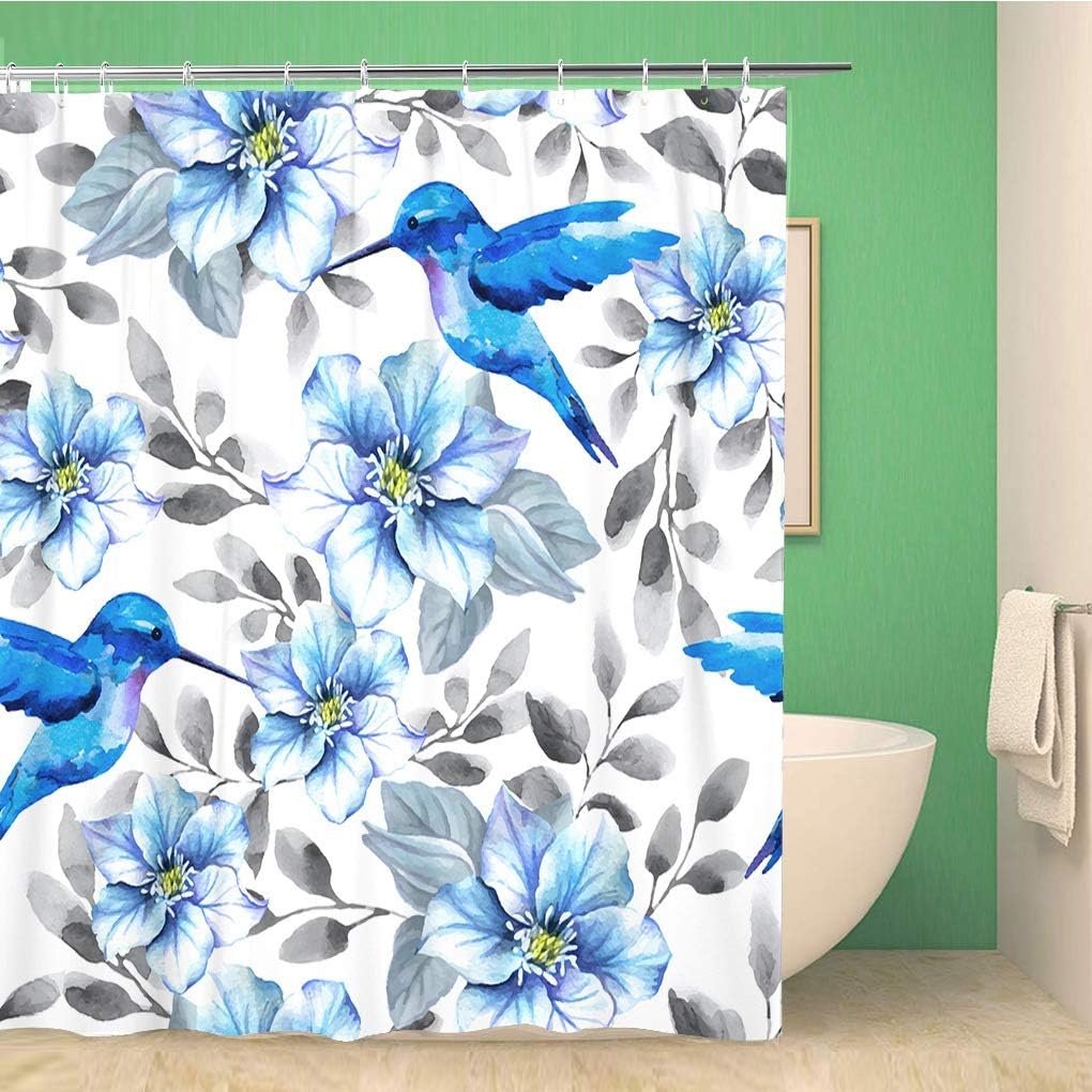 Colorful Hummingbirds and Flowers Watercolor Shower Curtain, Waterproof Fabric, Bathroom Decor