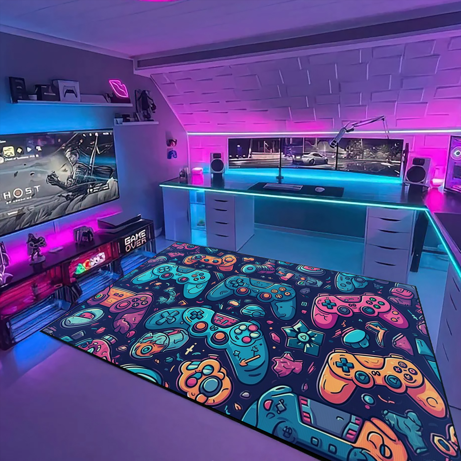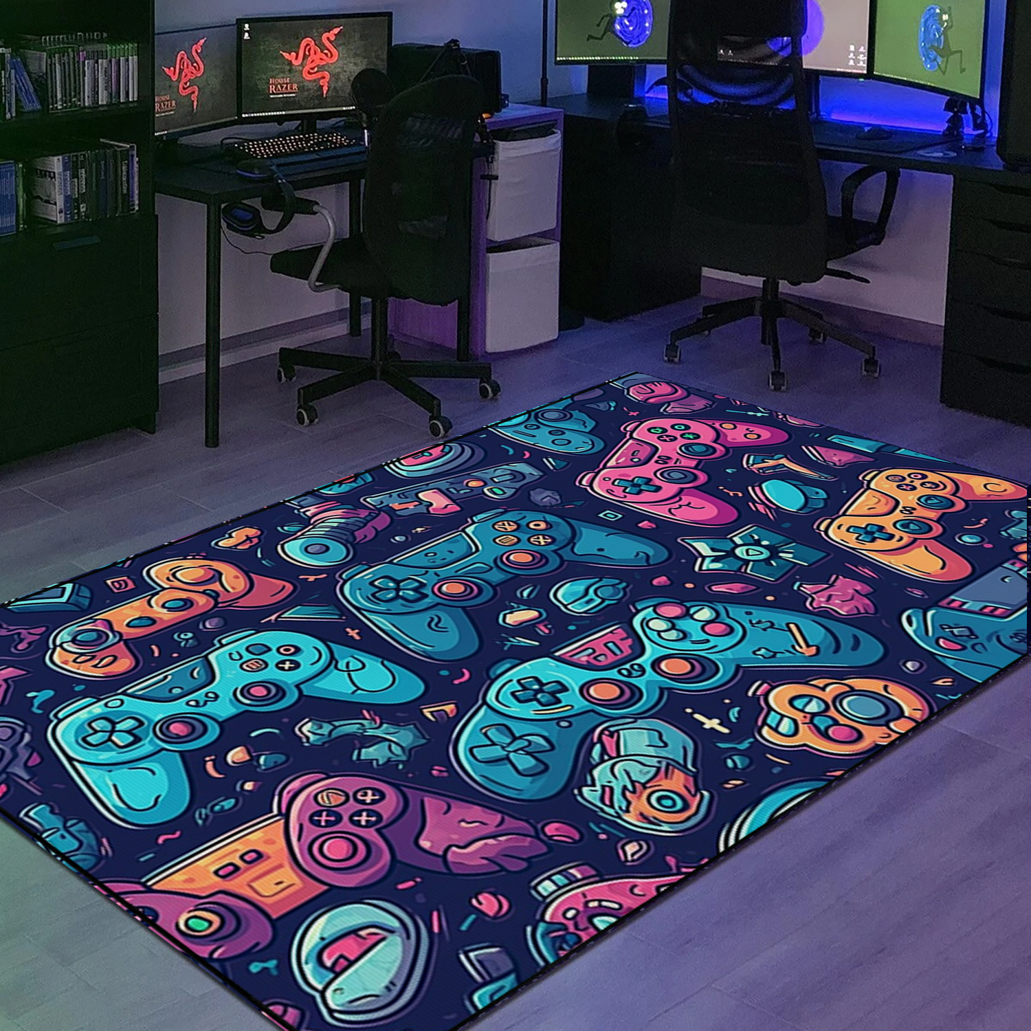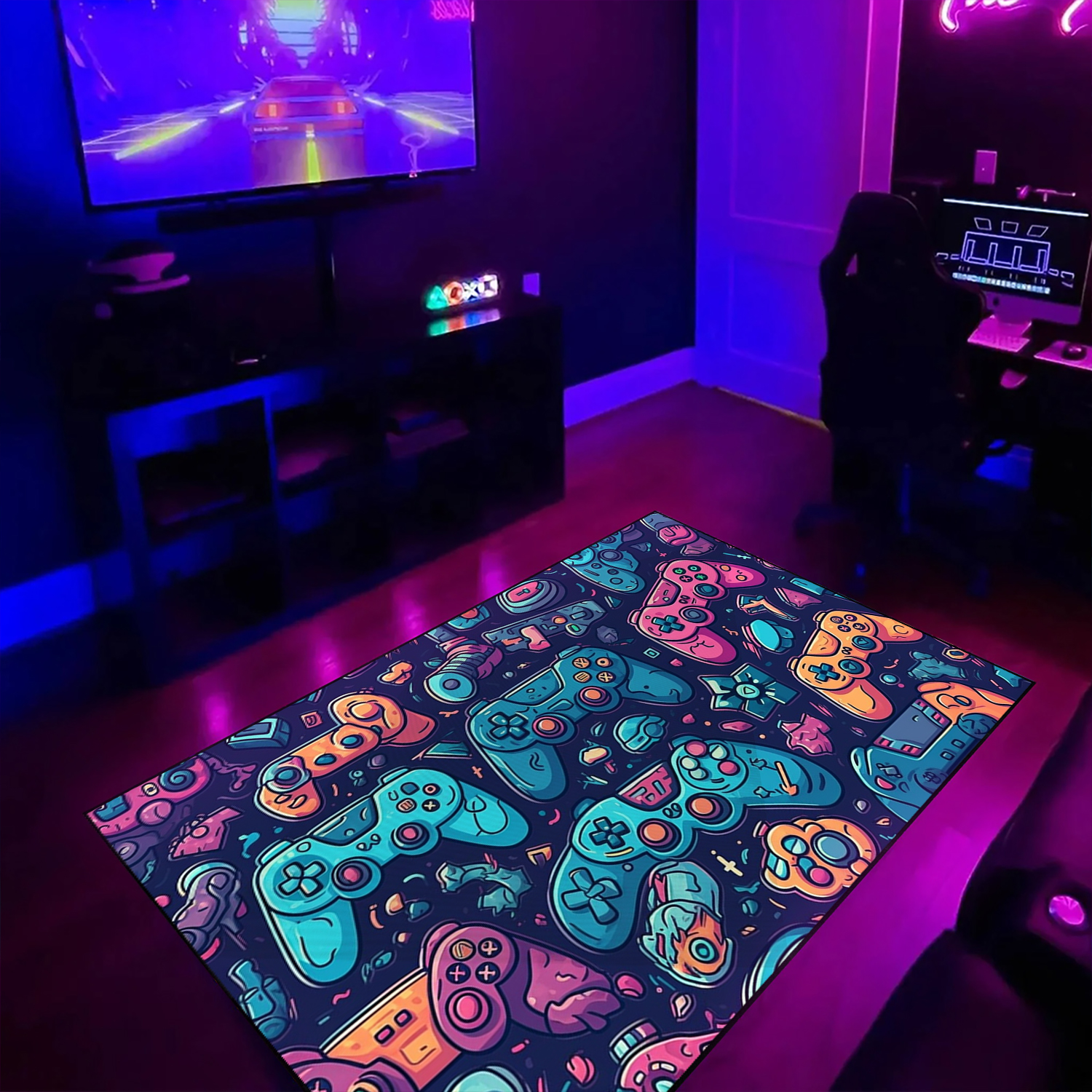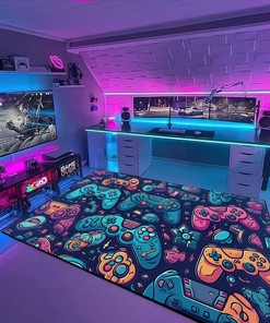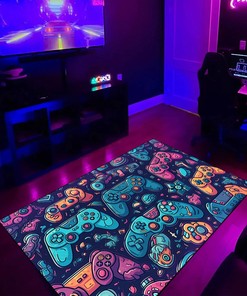 Custom Gamer Rug for Teen Boys – Game Room Themed Area Rug M55