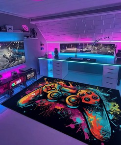 Custom Gaming Rug for Boys Room – Personalized Area Rugs for Game Room or Bedroom – Controller Design M33