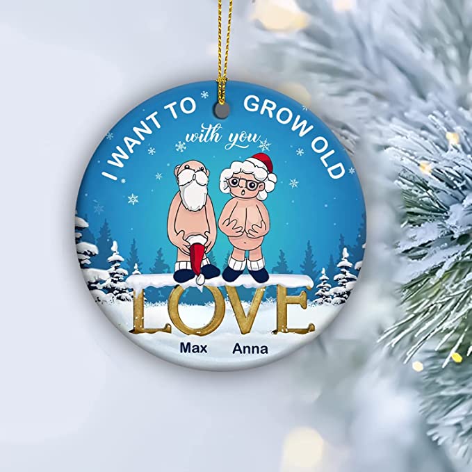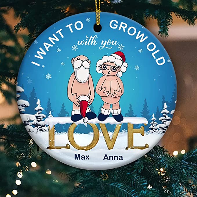 Custom Name I Want to Grow Old with You Ornament, Anniversary Present for Old Couple Husband & Wife, 2022 Xmas Gifts Ceramic Ornament