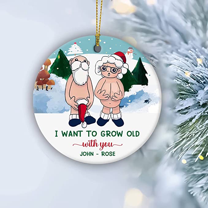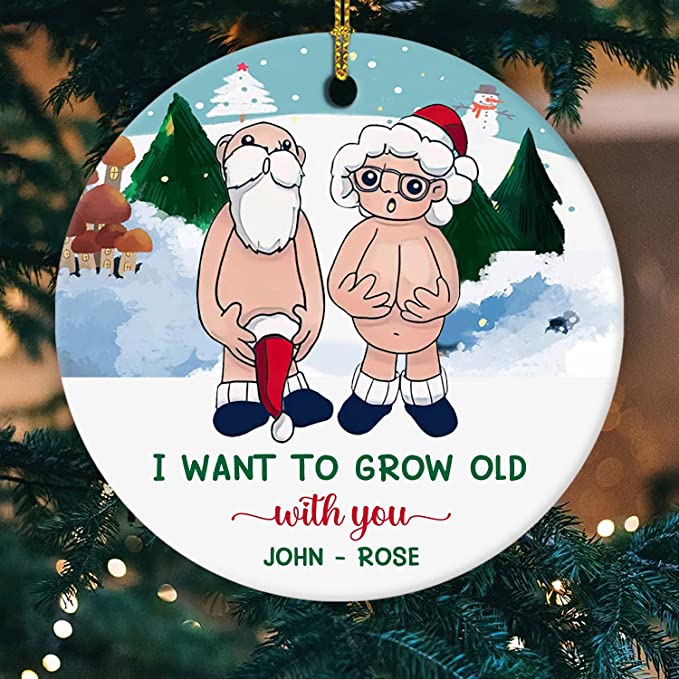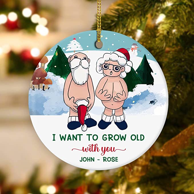 Custom Name I Want to Grow Old with You Ornament, Personalized Anniversary Present for Old Couple Husband & Wife, 2022 Christmas Gifts Ceramic Ornament