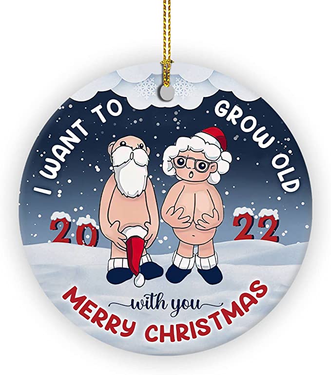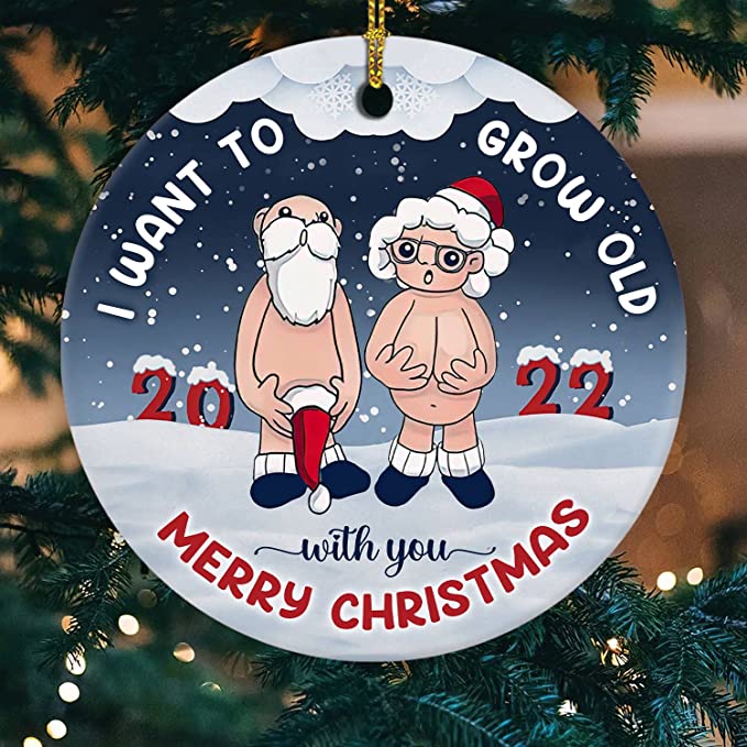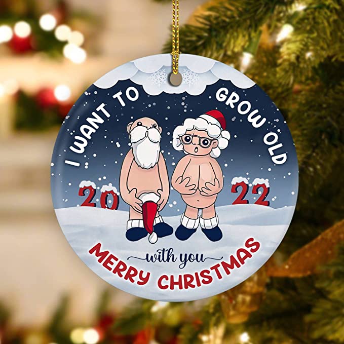 Custom Name I Want to Grow Old with You Ornament, Personalized Anniversary Present for Old Couple Husband & Wife, Ceramic Ornament 2022 Christmas Gifts