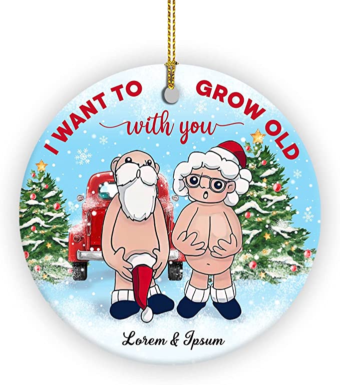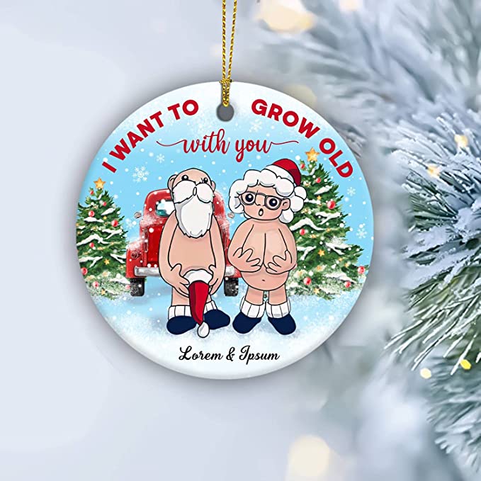 Custom Name I Want to Grow Old with You Ornament, Personalized Anniversary Present for Old Couple Husband & Wife, Ceramic Ornament Merry Xmas Gifts