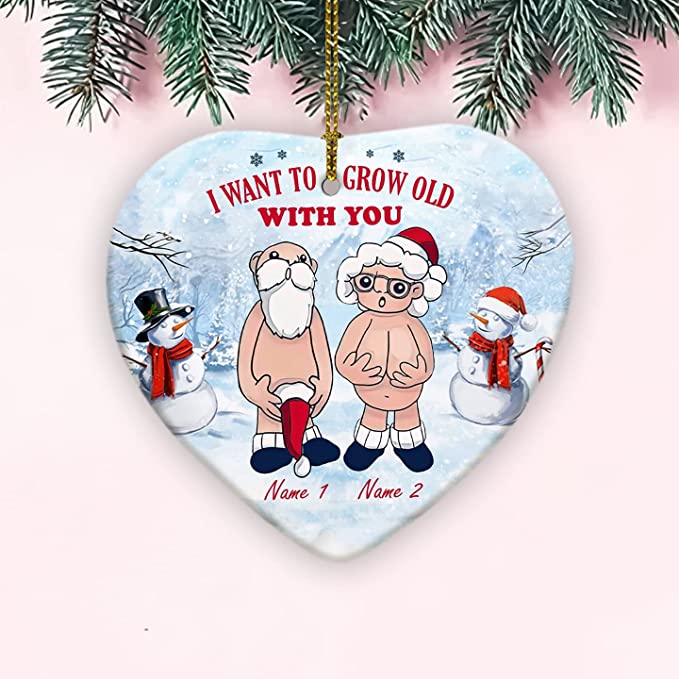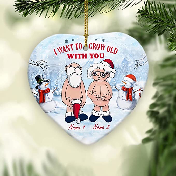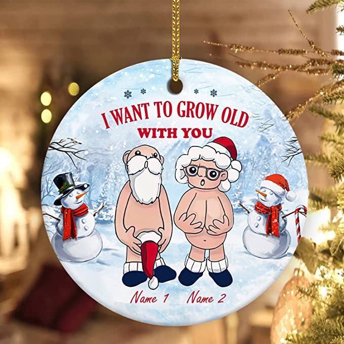 Custom Name I Want to Grow Old with You Ornament, Xmas Gifts Anniversary Present for Old Couple Husband & Wife, 2022 Ceramic Ornament