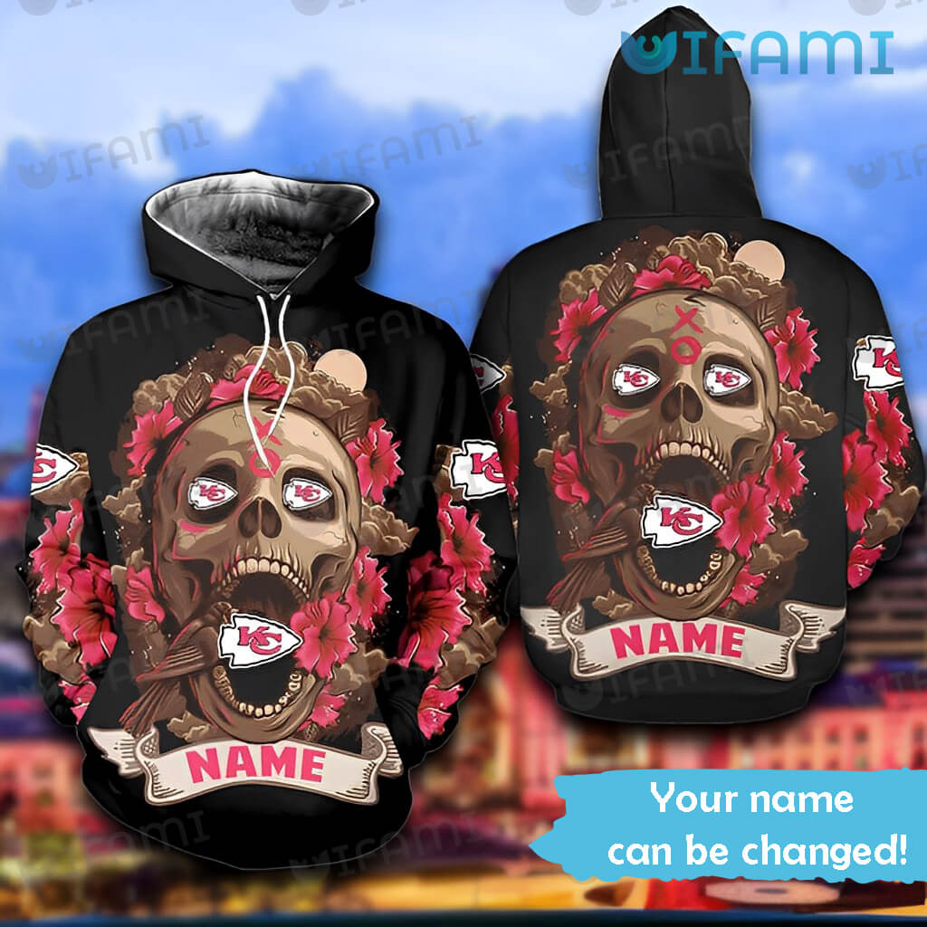 Custom Name KC Chiefs Hoodie 3D Skull Flower Kansas City Chiefs Gift