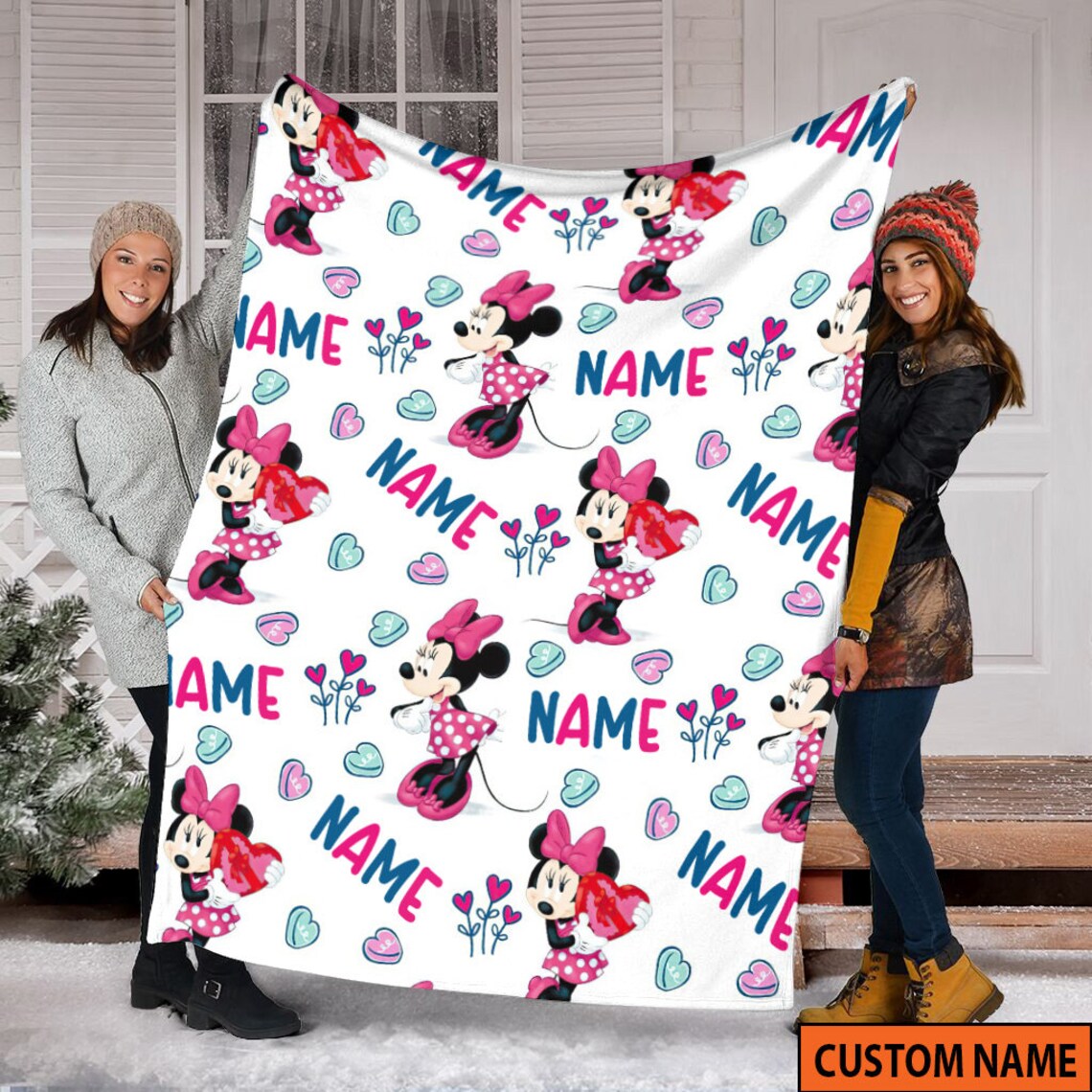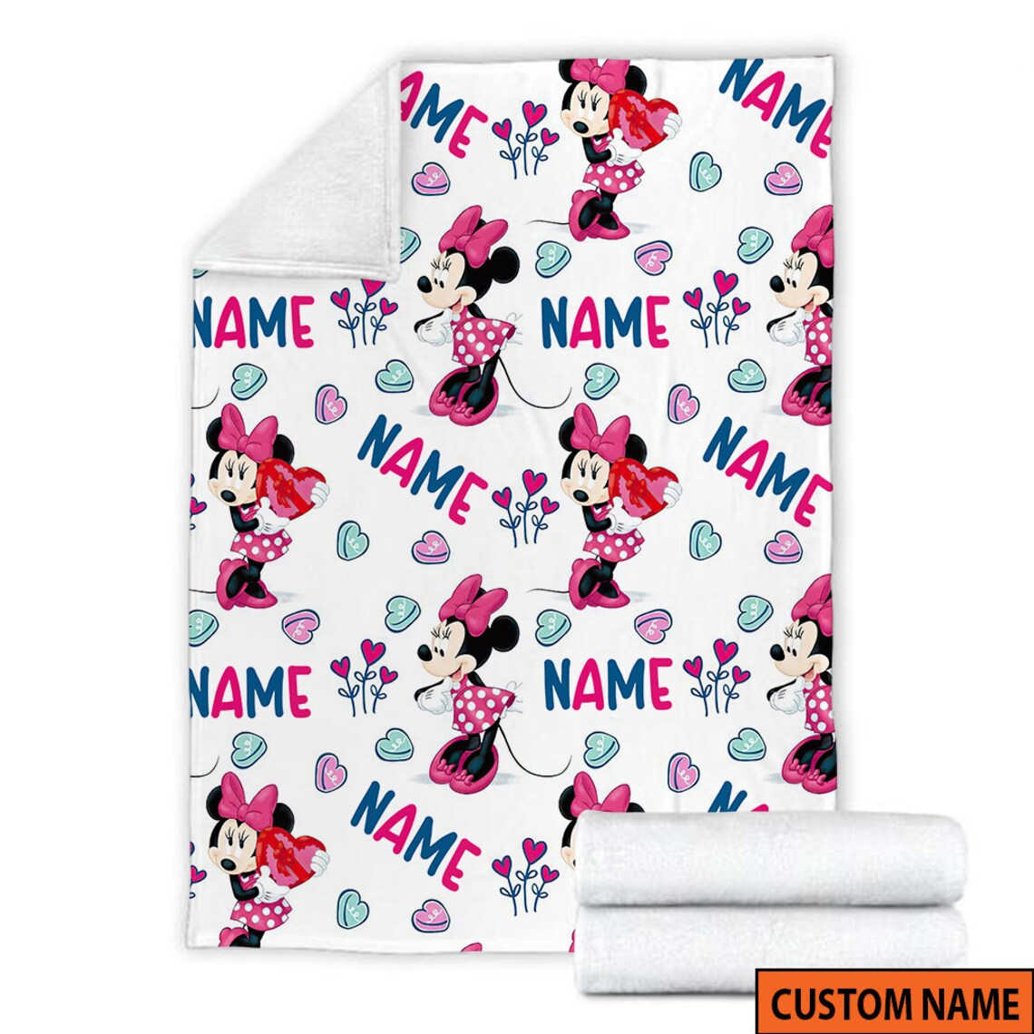 Custom Name Minnie Mouse Blanket, Disney Blanket, Minnie Mickey Mouse Gifts Characters Sherpa Blanket