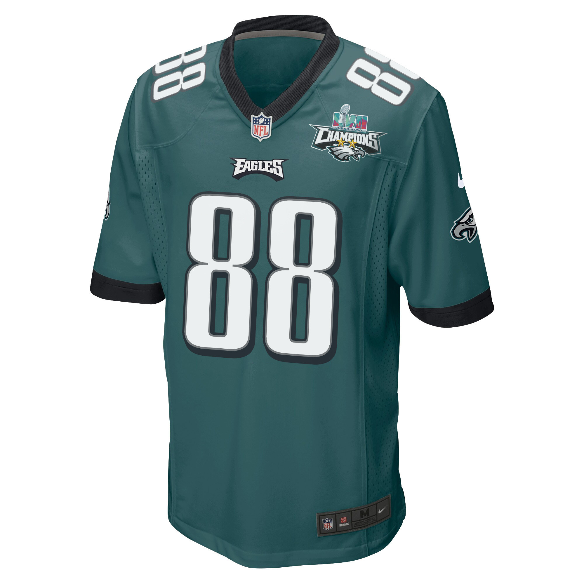 Dallas Goedert 88 Philadelphia Eagles Super Bowl LVII Champions 2 Stars Men Game Jersey – Midnight Green