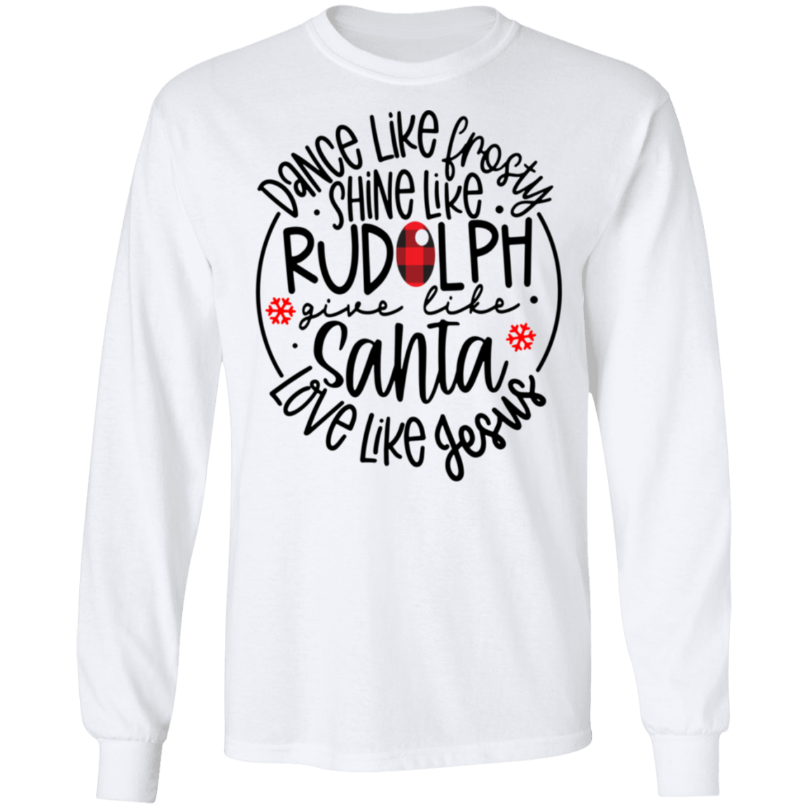 Dance Like Frosty Shirt Give Like Santa Love Like Jesus Christmas