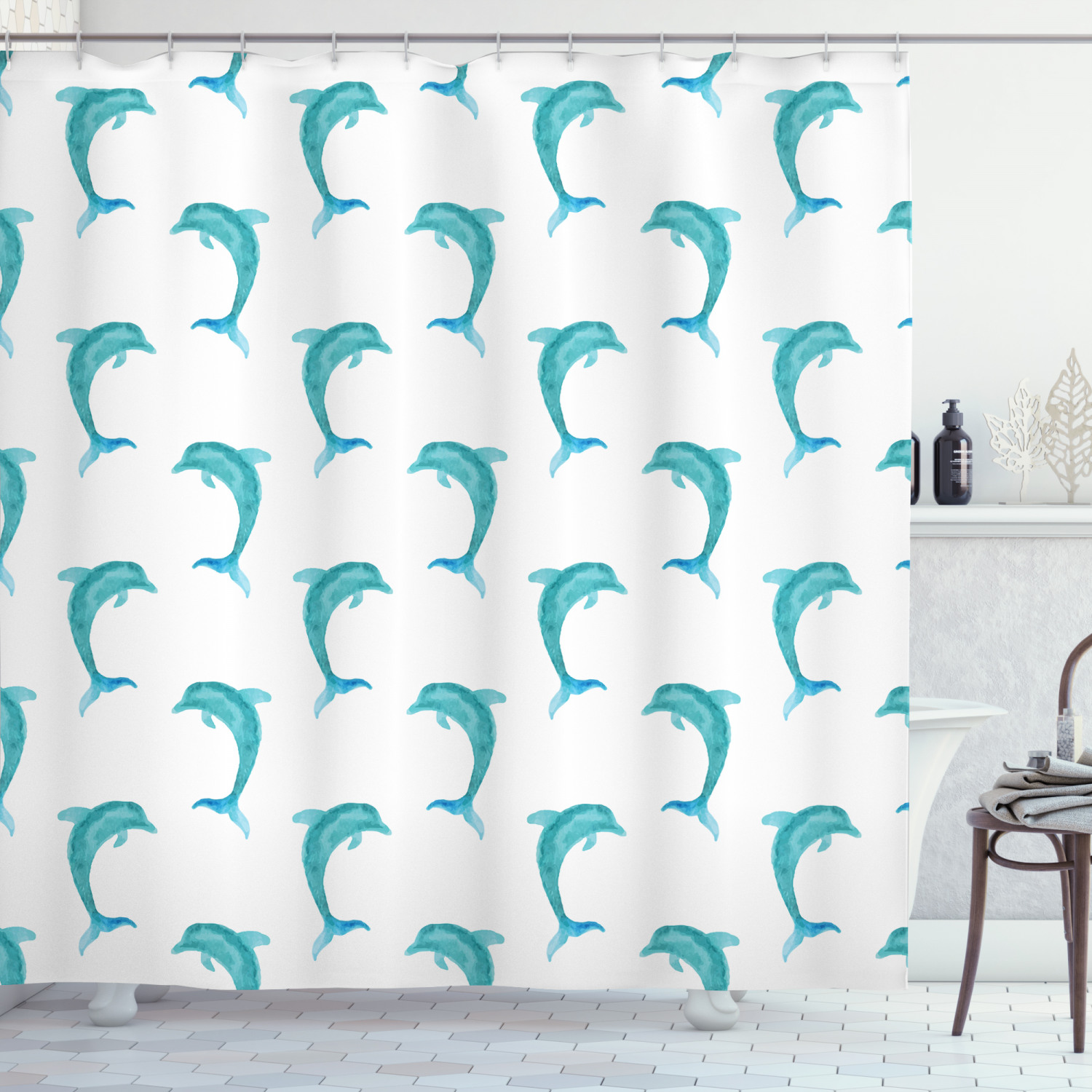 Dolphin Mammals Jumping Shower Curtain – Ocean Animal Bathroom Decor Print