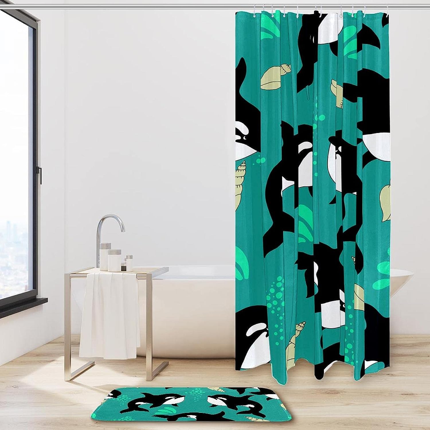 Our Shower Curtain Set includes one shower curtain and 12 hooks, making it compatible with most standard size shower stalls and bathtubs. The curtain is designed to fit both straight and curved shower rods, ensuring a seamless installation process.