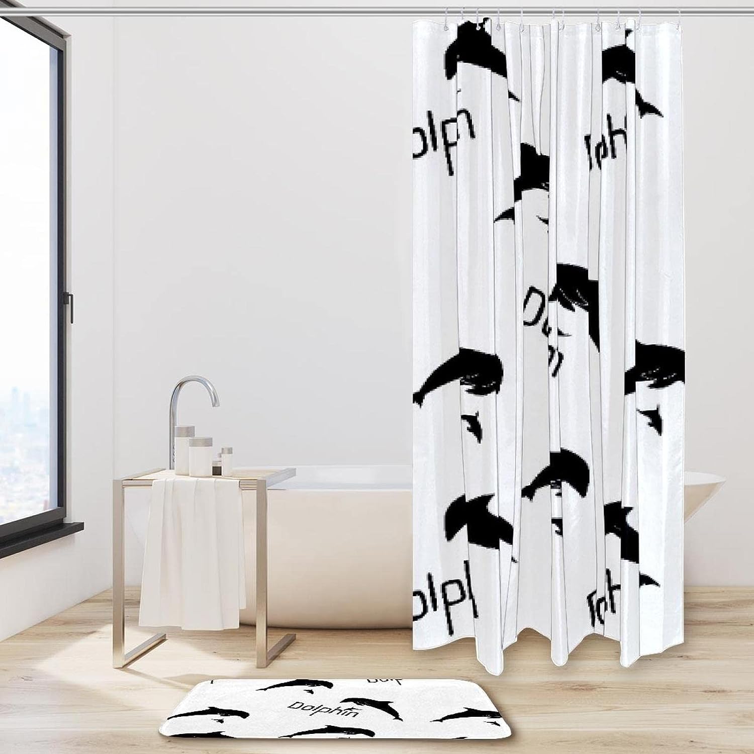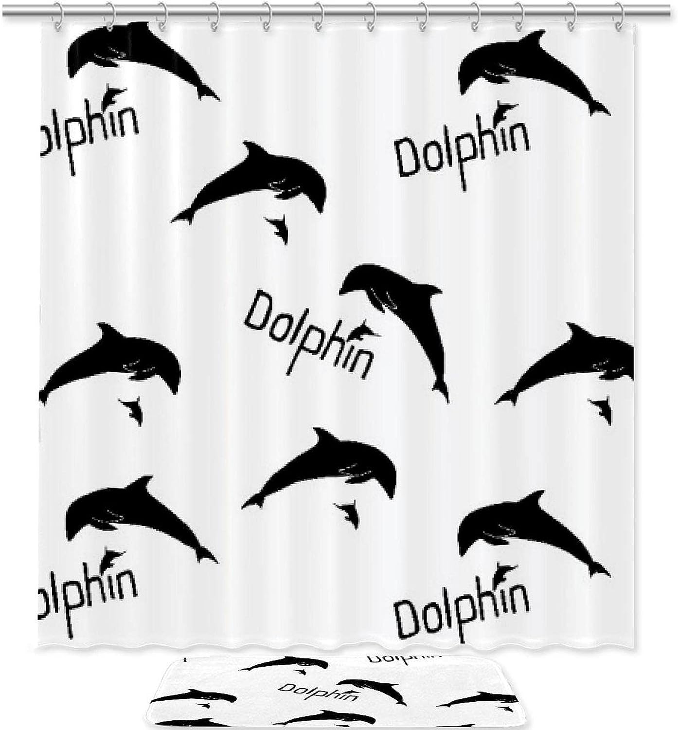 Dolphin Silhouette Tubumping Shower Curtain in Waterproof Fabric for Bathroom Decor
