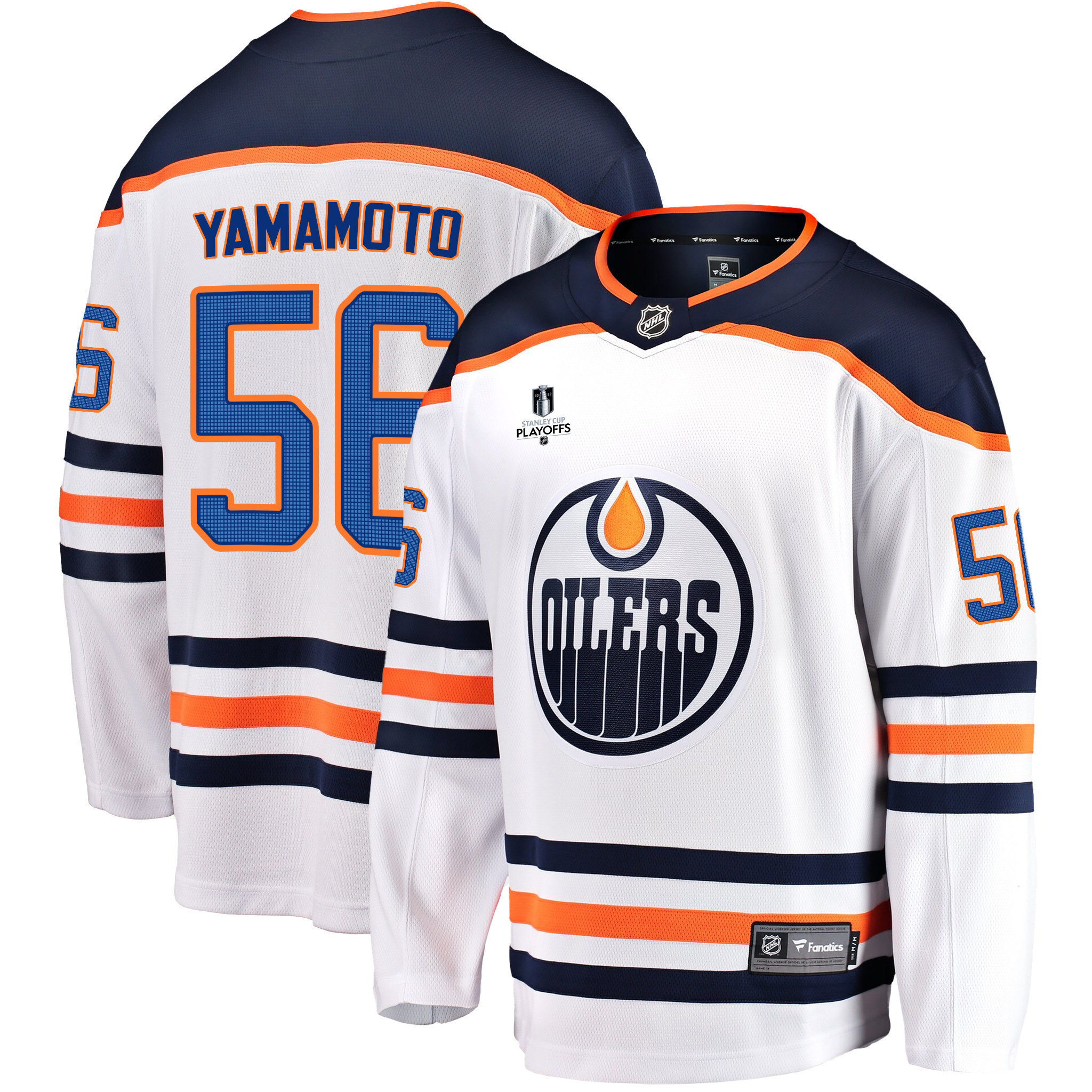 Edmonton Oilers Kailer Yamamoto 56 Away 2022 Stanley Cup Playoffs Breakaway Men Jersey – White