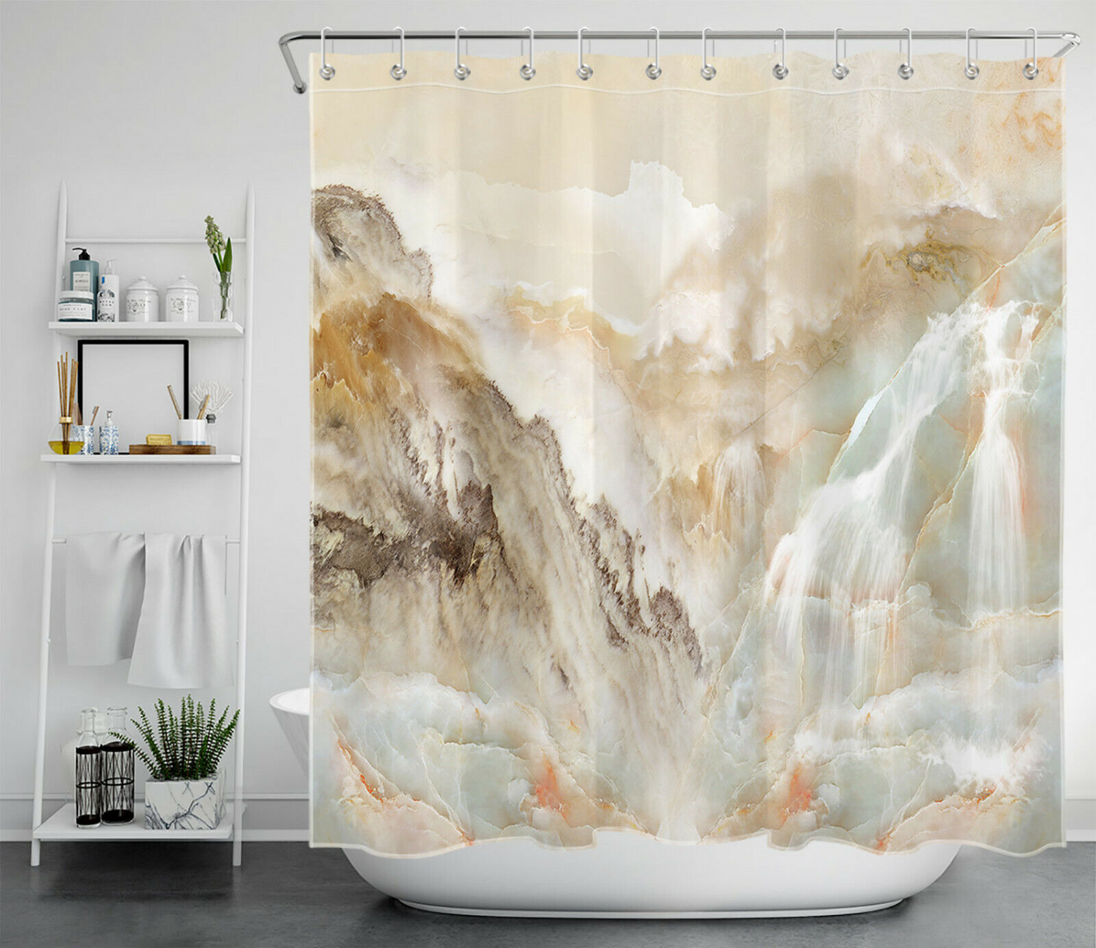 Elegant Abstract Mountain Waterfall Marble Texture Shower Curtain for Luxurious Bathroom Decor