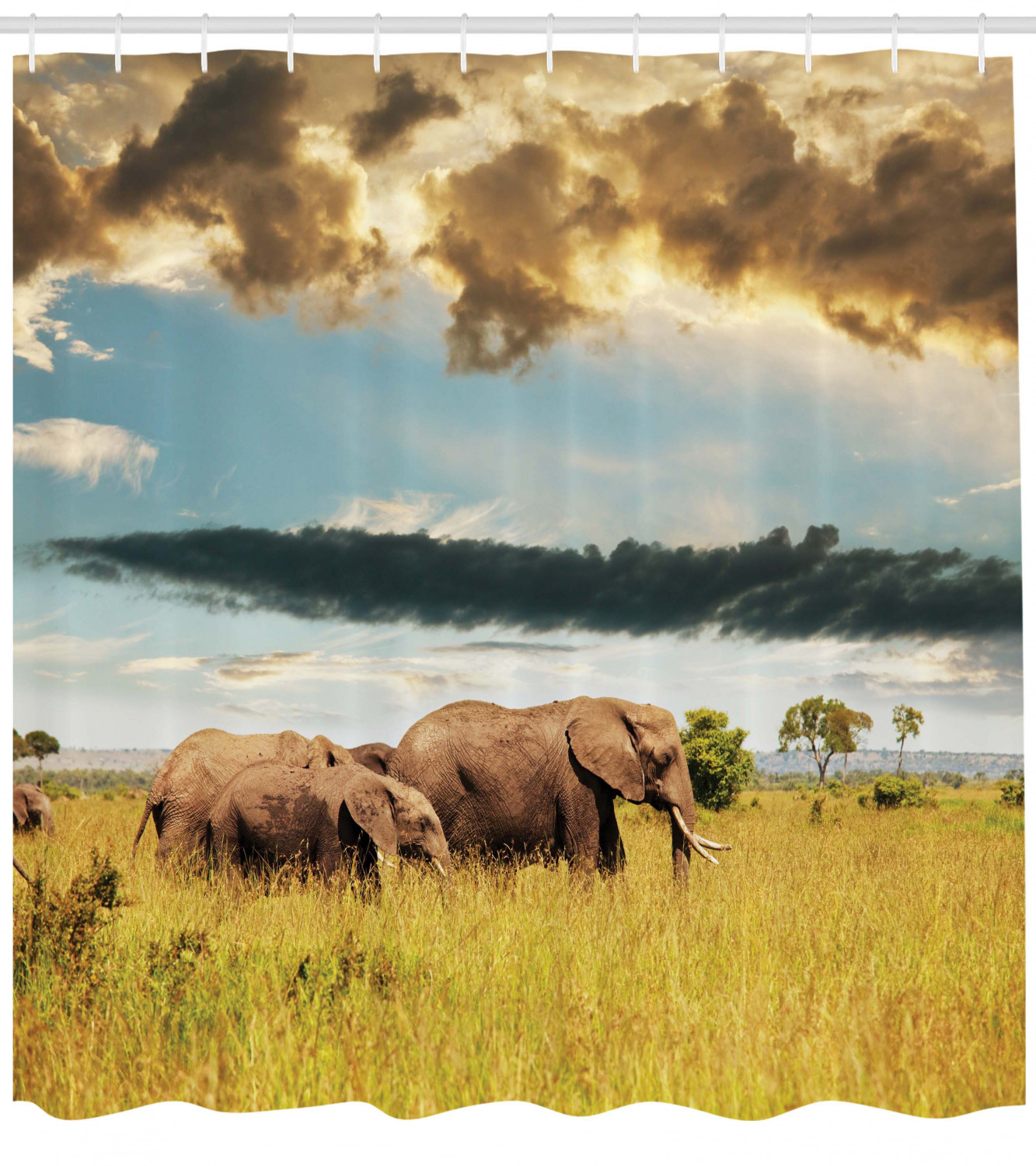 Elephant Family African Shower Curtain with Photo Print for Safari Bathroom Decor