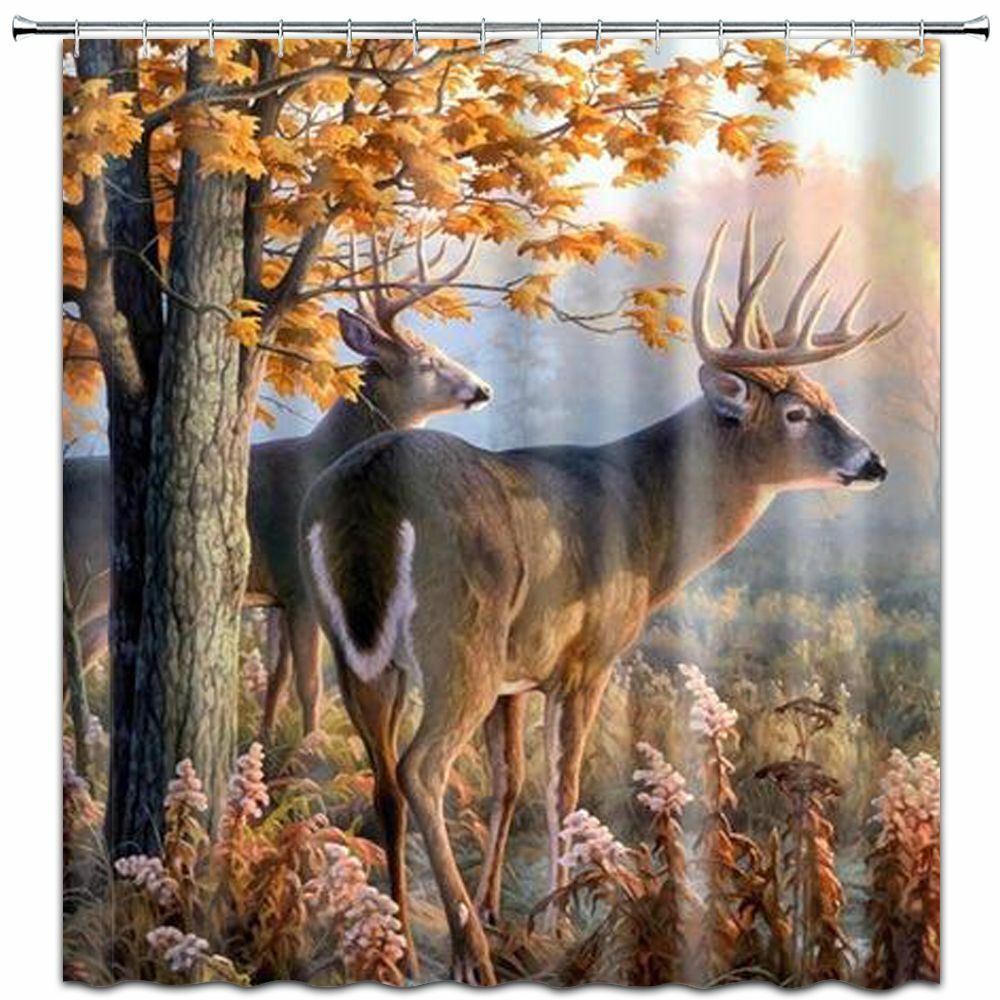 Elk in Autumn Forest Animal Print Shower Curtain for Bathroom Decor