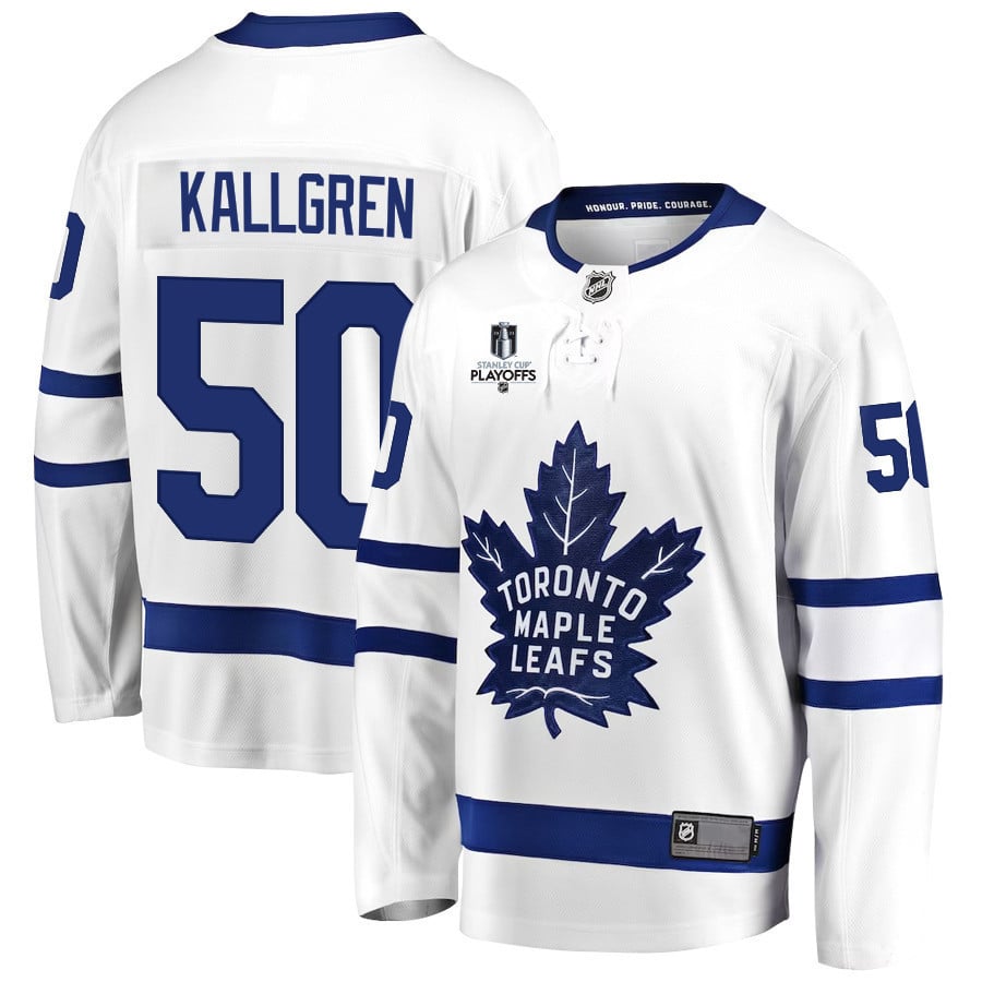 Erik Kallgren 50 Toronto Maple Leafs Stanley Cup 2023 Playoffs Patch Away Breakaway Men Jersey – White