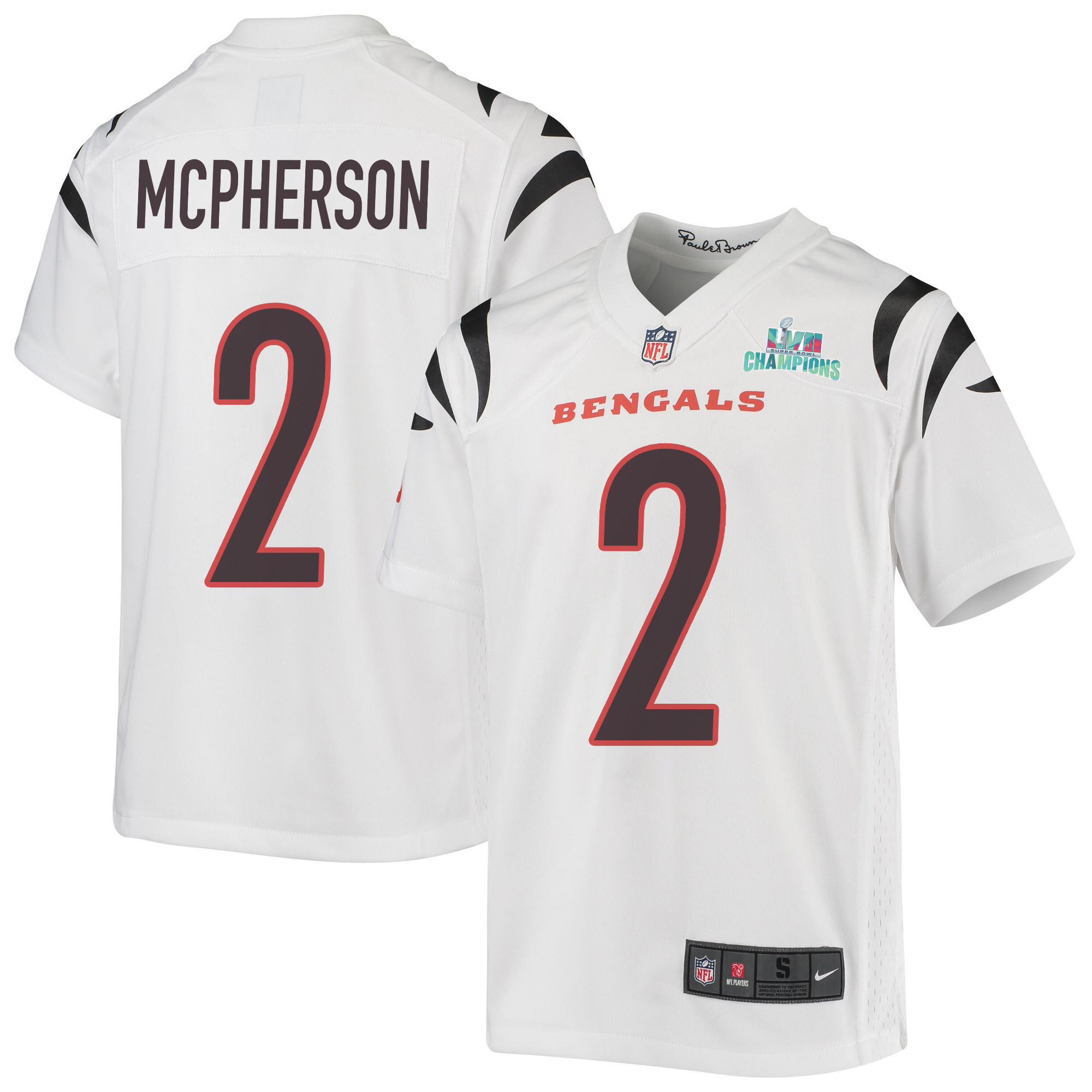 Evan McPherson 2 Cincinnati Bengals Super Bowl LVII Champions Youth Game Jersey – White