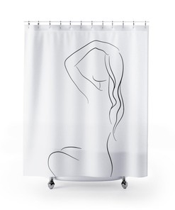 Female Body Outline Shower Curtain, Black And White Bath Curtain, Modern Feminine Bathroom Decor