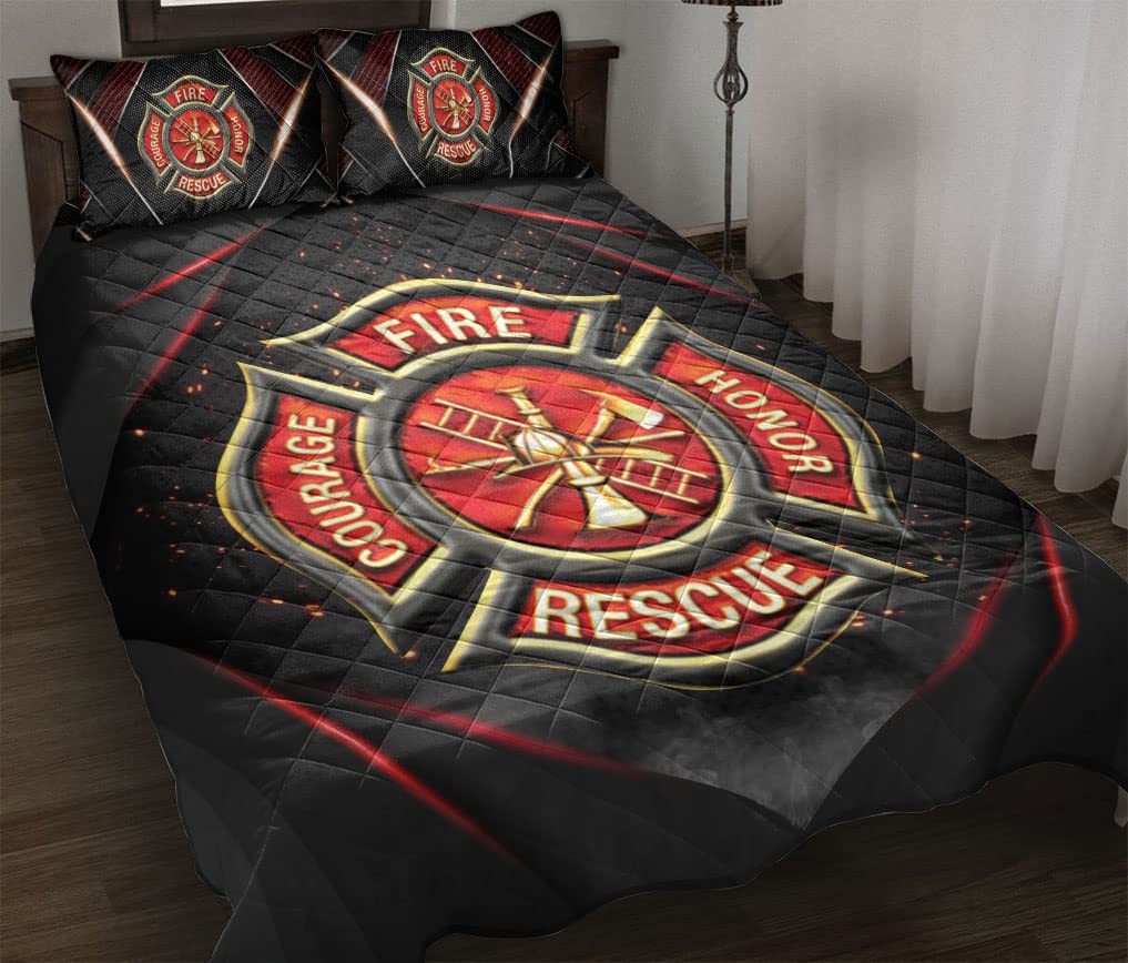Firefighter Badge Black Red Firemen Unique Gift Idea for All Season Quilt Blanket