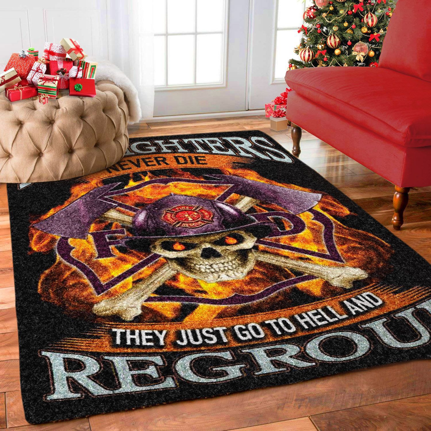 Firefighter Never Die They Just Go To Hell And Regroup Rugs, Firefighter Area Rug, Fireman Carpet Gifts for Dad, Son, Fireman, Firefighter Lovers