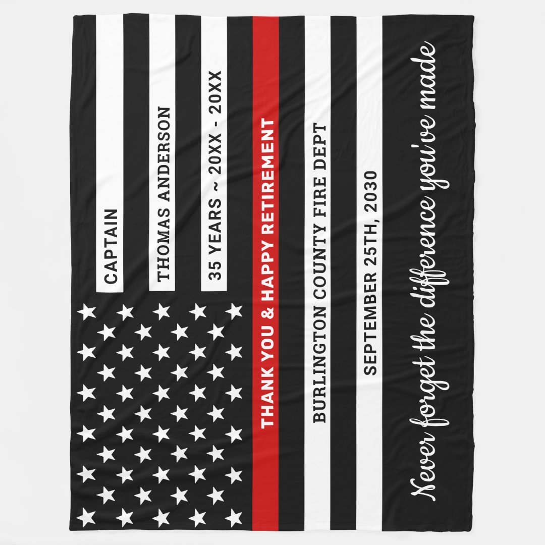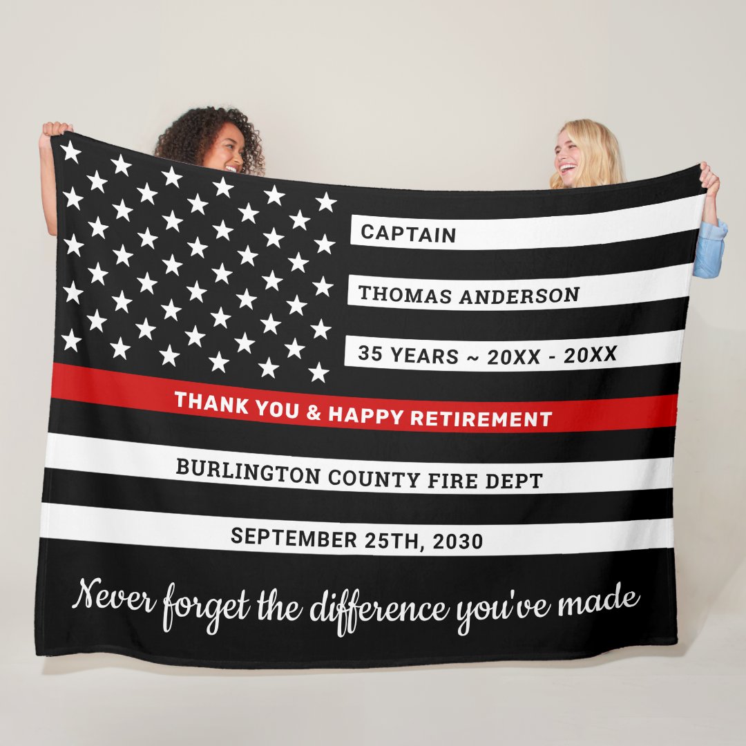 Firefighter Retirement Service Thin Red Line Flag Fleece Blanket