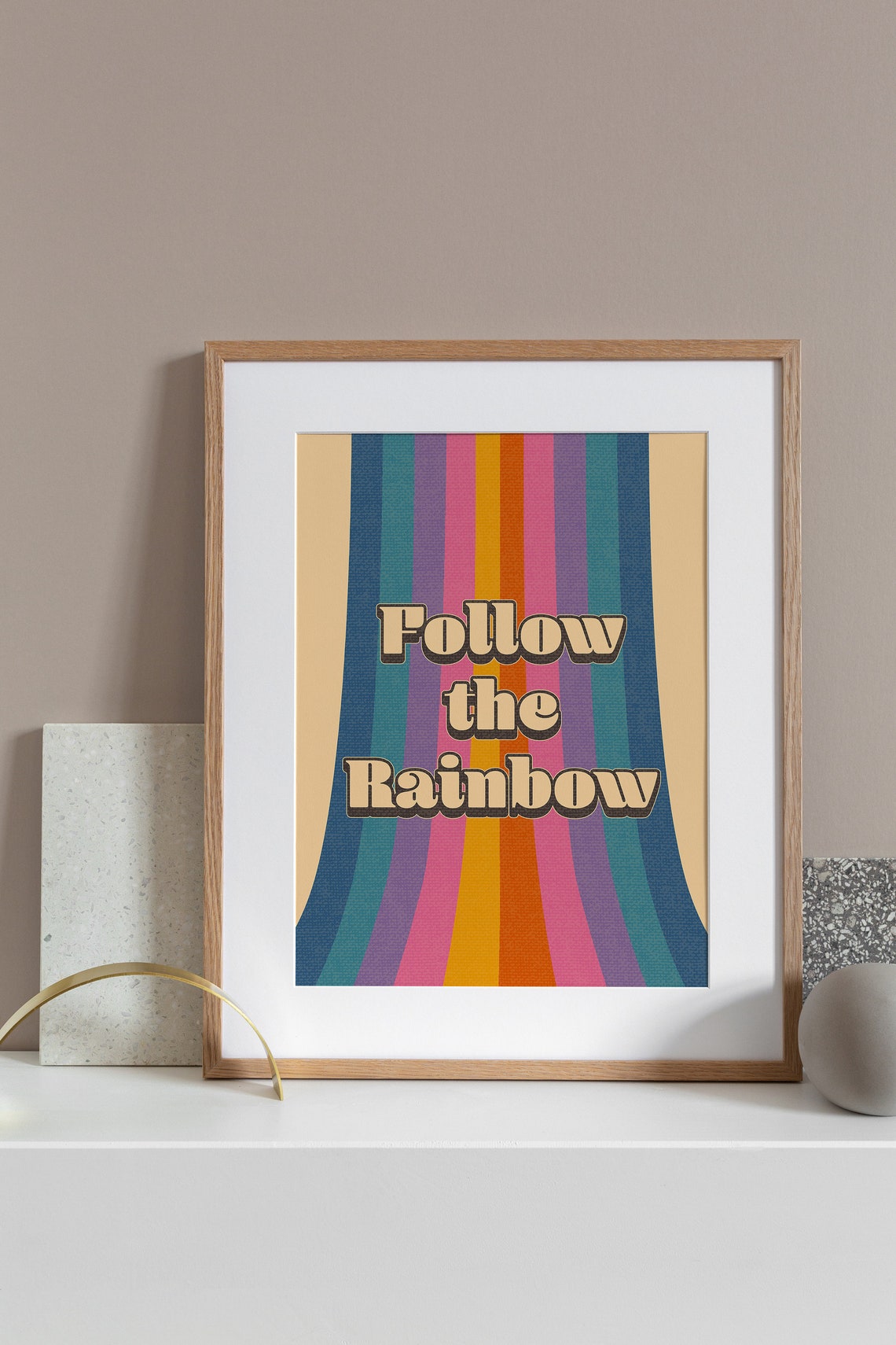 Follow The Rainbow Retro Rainbow Motivational Quote Aesthetic Vintage 70s Poster Wall Art Canvas Prints