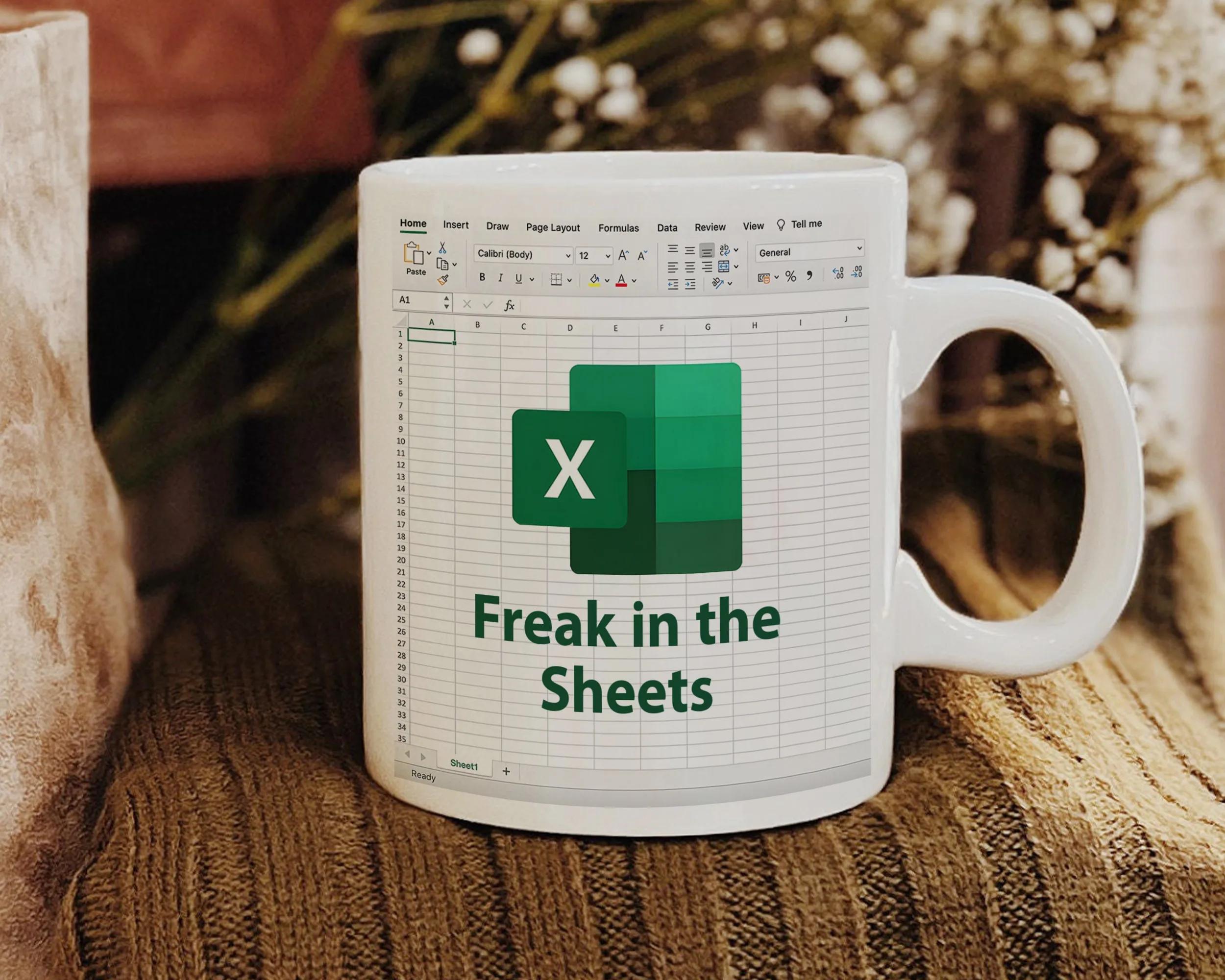 Looking for a unique and fun gift for the Excel aficionado in your life? Look no further than the Freak In The Sheets Excel Mug! This eye-catching and humorous mug is the perfect way to showcase your love for spreadsheets and data analysis. With its clever design and high-quality construction, this mug is sure to become a favorite in any office or home. Whether you’re sipping your morning coffee or enjoying an afternoon tea, let the world know that you’re a true Excel geek with the Freak In The Sheets Excel Mug. Order yours today and add a touch of geeky charm to your beverage routine!