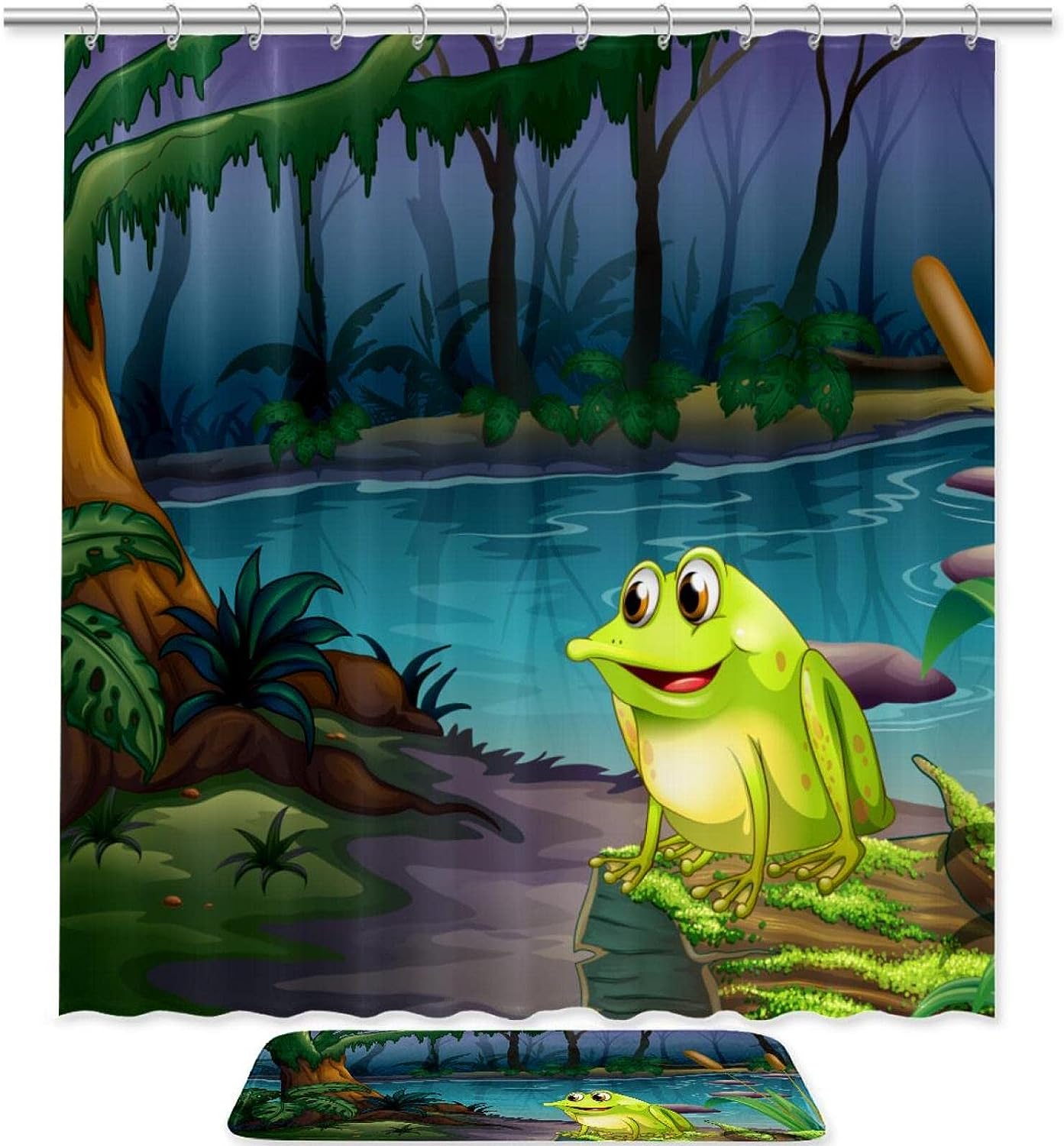 Frog Above Trunk Algae Shower Curtain Waterproof Bathroom Decor