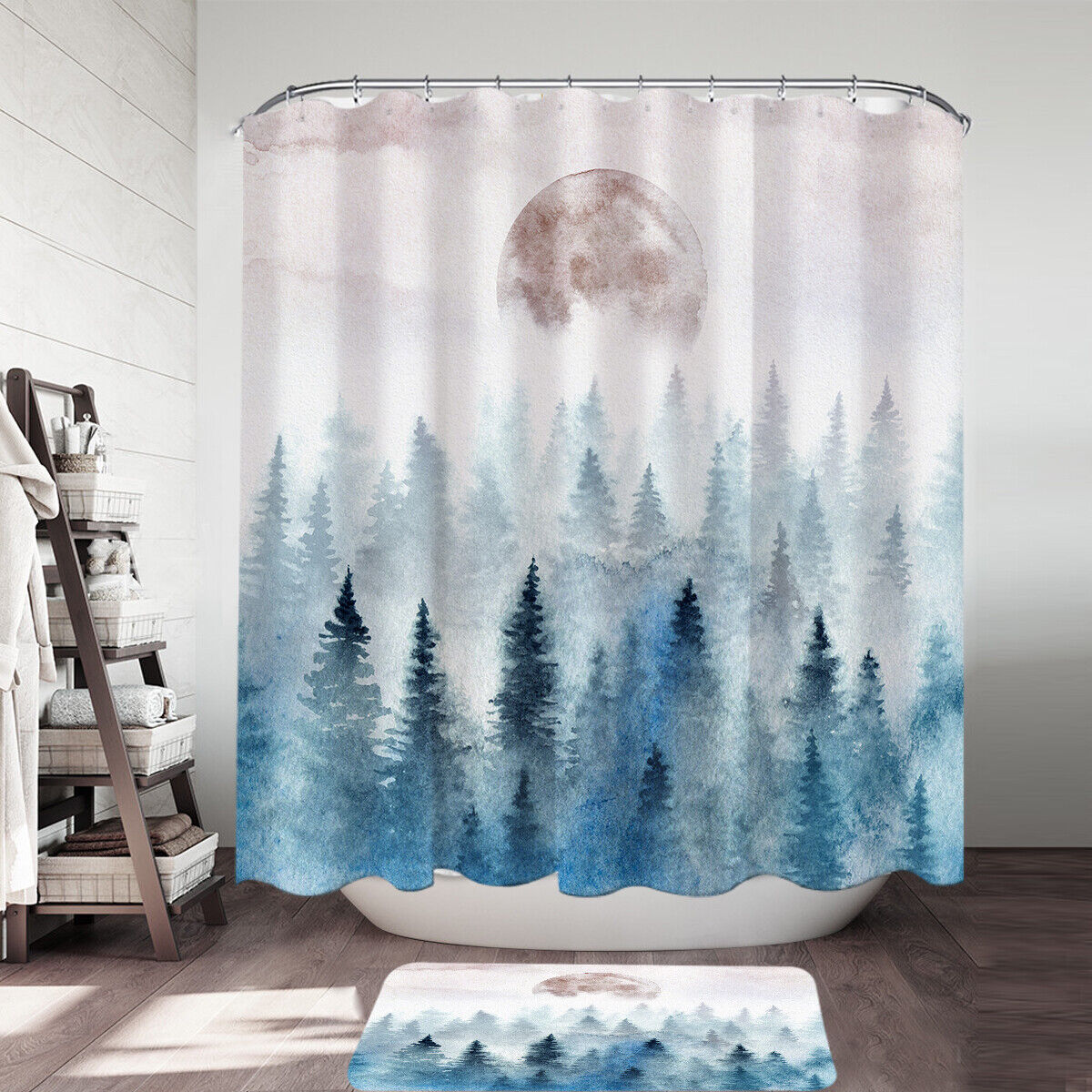 Full Moon Forest Shower Curtain – Art Painting Nature Bathroom Decor