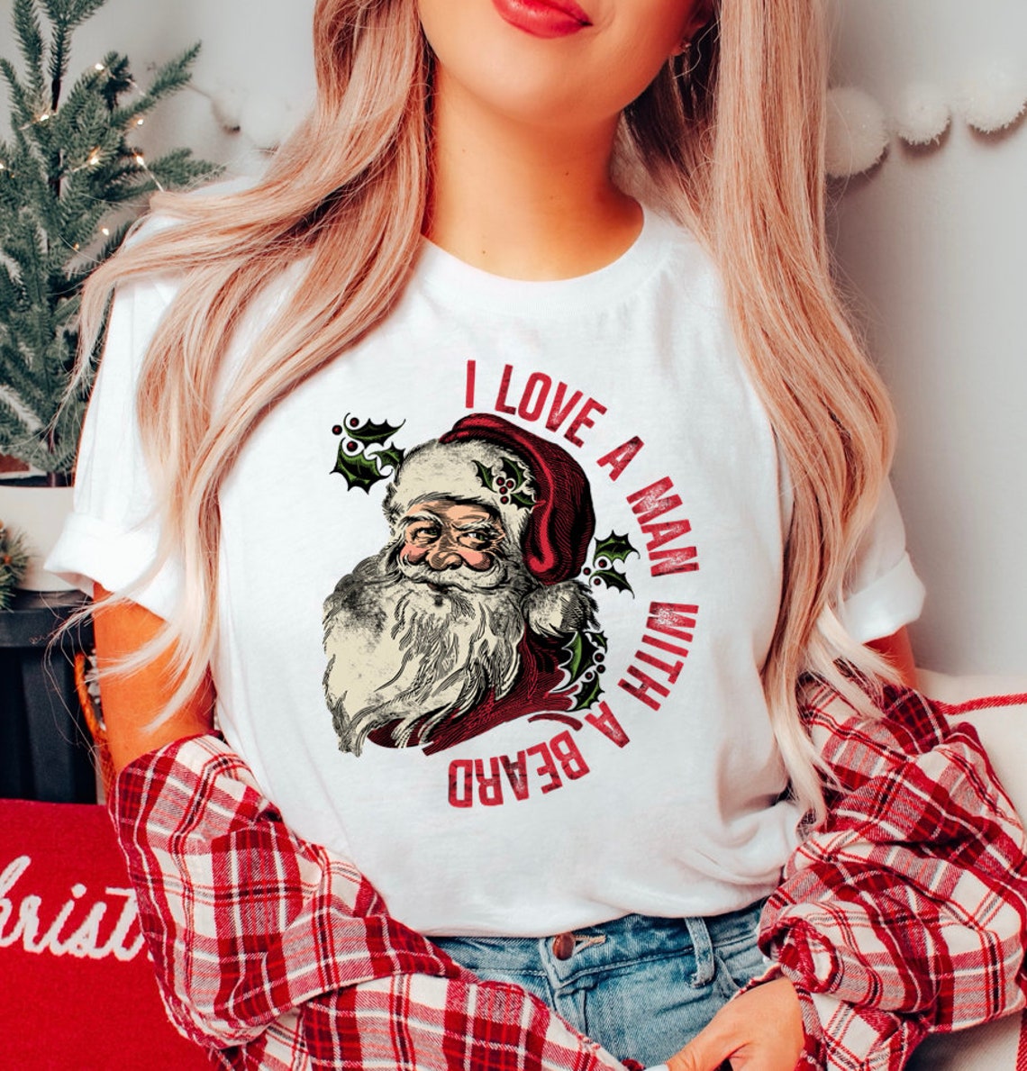 Funny Santa Beard Sweatshirt, cute Christmas shirt for women