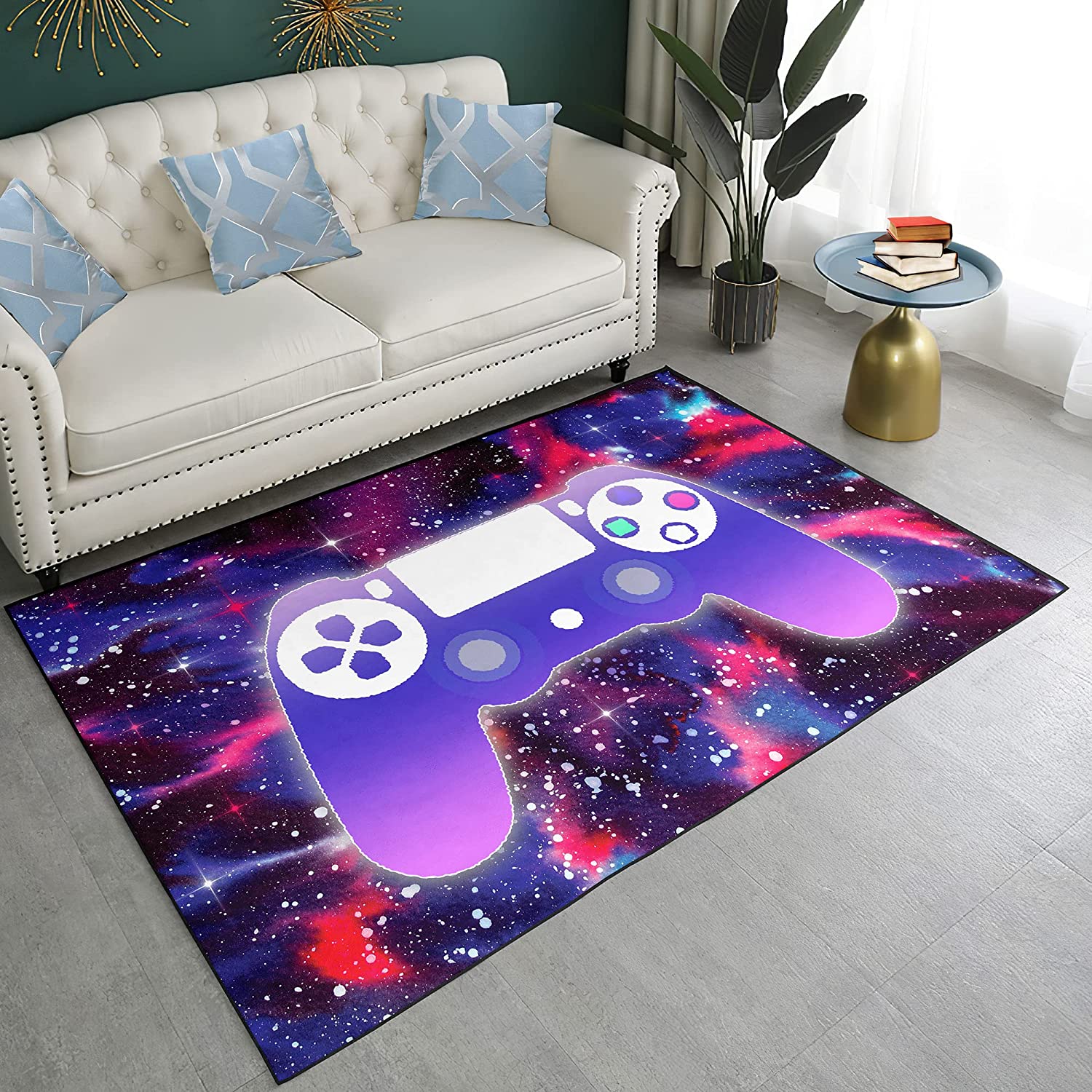 Game Rugs for Kids Bedroom with Universe Galaxy Floor Mat Non-Slip Throw Rugs and Soft Door Mat