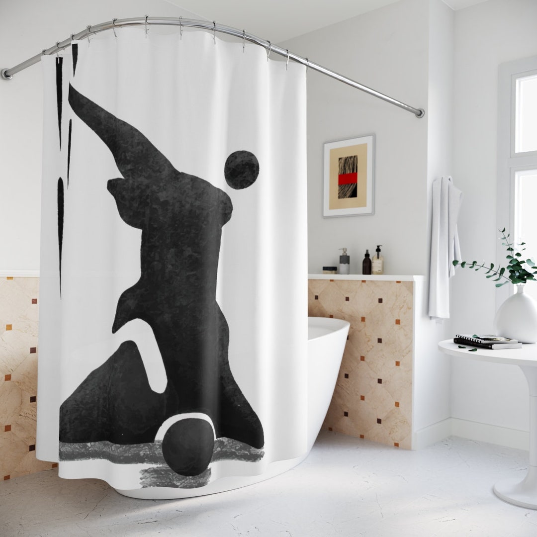 Geometric Abstract Black And White Shower Curtain, Modern Designer Curtain, Bathroom Curtain, Decoration, Minimalist Home Decor Art