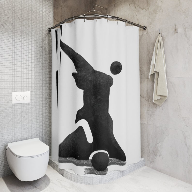 This shower curtain is here to add an original touch to any bathroom with your designs. Made with highly durable polyester, this curtain stays like new for a long time to come and is a perfect printing area for your art.
