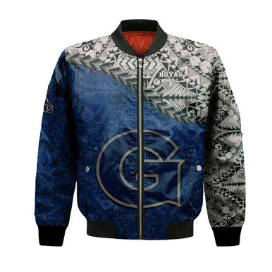 Georgetown Hoyas Bomber Jacket Grunge Polynesian Tattoo- NCAA